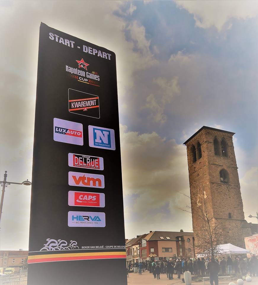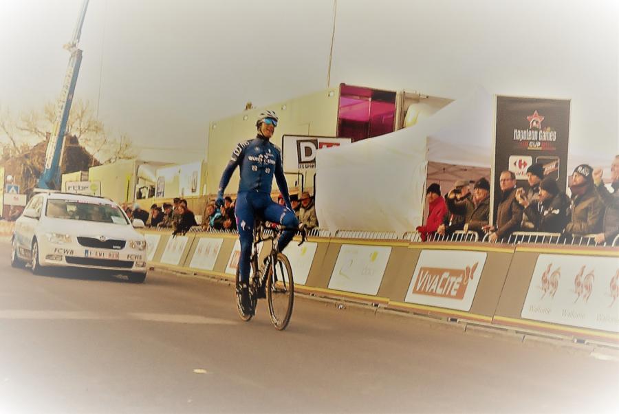 12u25. Start! De renners zijn vertrokken voor hun helletocht, -3 graden op de thermometer. Koud? Nee, hoor. Berekoud! De renners zijn amper herkenbaar, hun gezicht zit verscholen achter een warme buf. Na 5 minuten koers passeert het peloton een 2e maal door het centrum van Quaregnon. Na deze passage loopt de startplaats leeg, de mensen kruipen terug lekker binnen. De ene keert huiswaarts, de andere gaat op zoek naar een warme koffie in café Big Ben op het marktplein. En de volgers van de koers, die stappen richting hun wagen. Op zoek naar een volgende plek om hun helden aan te moedigen langs het parcours.