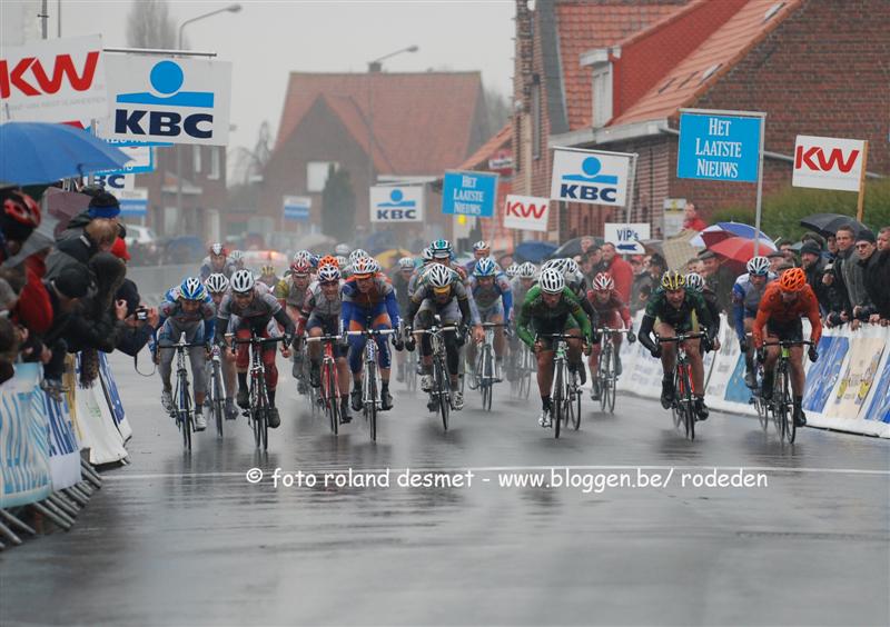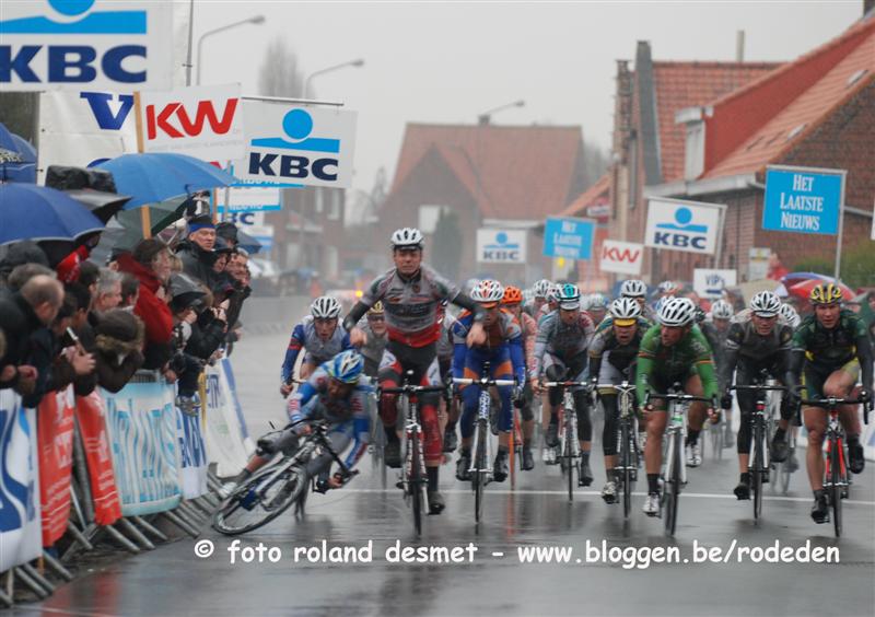 “Op ongeveer 150m van de streep kwam ik aan de leiding en hield ik het tot aan de streep. Ik wou m’n handen in de lucht gooien van blijdschap, maar toen bleef Kenny Van Hummel, die rechts van me zat, hangen aan het fotoapparaat van een toeschouwer. Hij kwam met z’n rug in mijn achterwiel terecht. En dus ging ik ook tegen de grond. Door de felle regen werd het een lange schuifpartij met gelukkig weinig schade.”