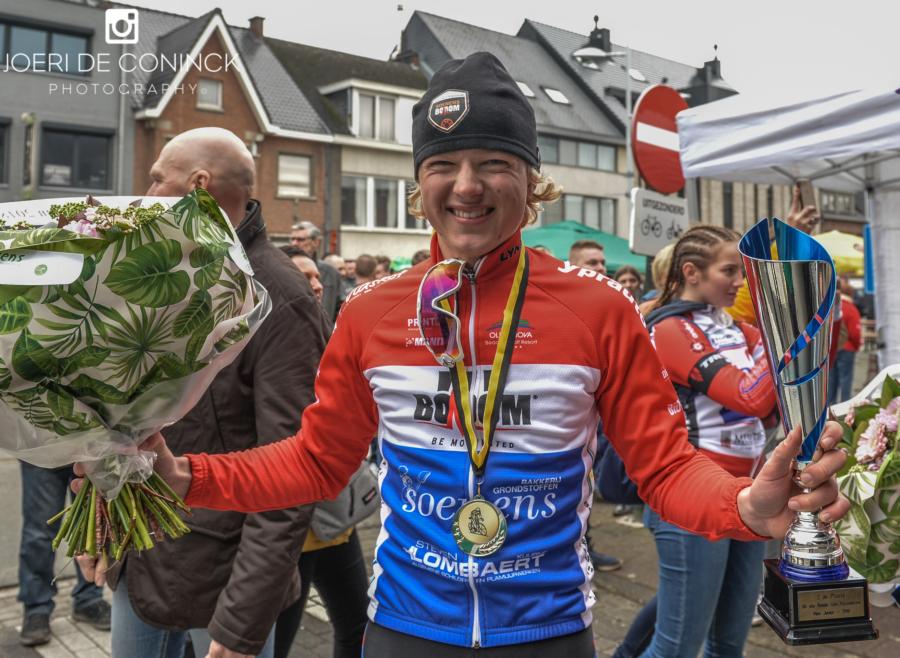 Terwijl de elites het tussen Antwerpen en Oudenaarde diende te doen, reden de mannen juniores zondag de Ronde van Vlaanderen tussen Geraardsbergen en Herzele. De Noor Arnes ging met de bloemen lopen, maar in de strijd om plek 2 was het de Drent Adne Koster die zijn snelle benen toonde in een sprint-à-deux met Vincent Van Hemelen van Heist Cycling Team.