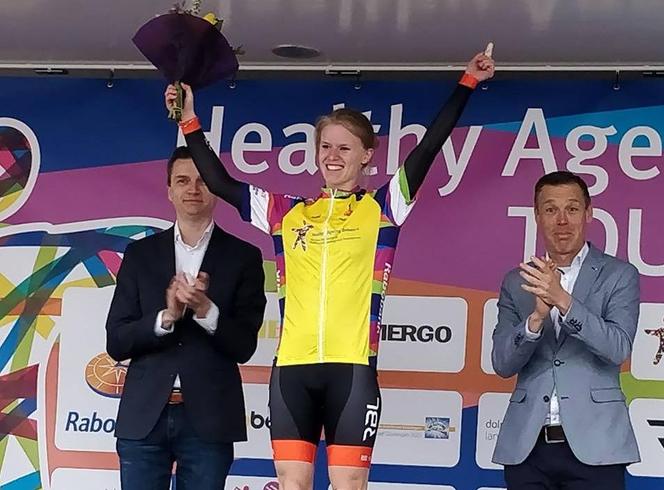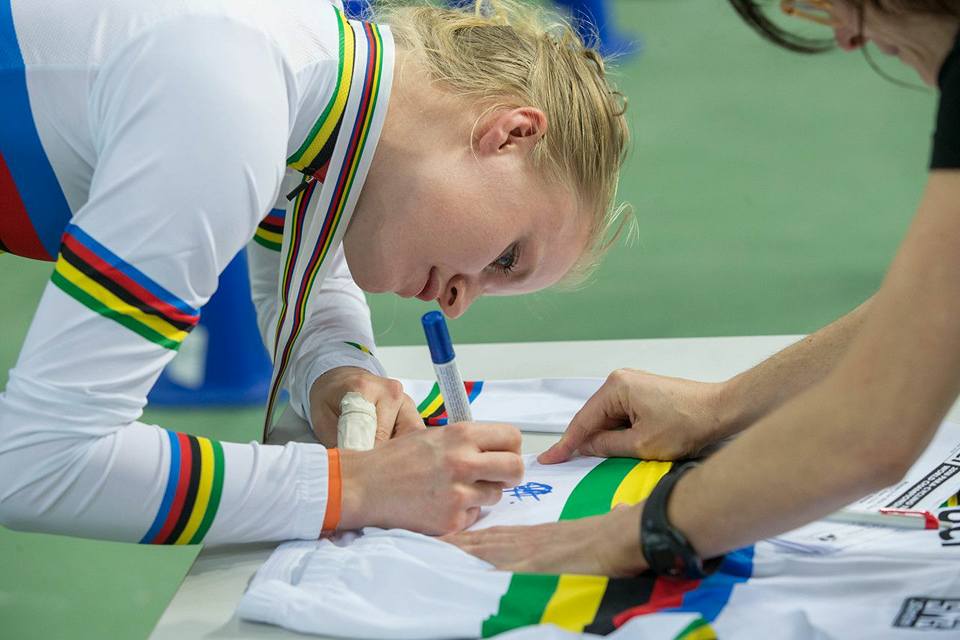Caroline Groot: “Ik ben vorig seizoen begonnen met de Europa Cup in Keulen, waar ik 3e werd in de wegrit. Vlak daarna ben ik Nederlands kampioene op de weg geworden en heb ik zilver gehaald op het NK tijdrijden. Ik kreeg dan te horen dat ik mocht starten in mijn 1e World Cup in Emmen en daar pakte ik het brons op de wegrit. Daarna zijn we overgegaan op het baanwielrennen. Mijn 1e wedstrijd was de teamsprint op het NK (valide); we finishten in de bronzen finale op de 4e plek, na verlies tegen Imke Brommer en Laurine van Riessen. Het was wel een hele mooie voorbereiding op mijn eerste para-cycling wedstrijd de week erna in Manchester. Daar won ik de 500m en de 3km en werd ik 2e op de scratch. Zo plaatste ik mij voor het WK in Rio de Janeiro, waar ik 4e werd op de 3km. Zowel op de 500m als op de scratch werd ik wereldkampioene.”