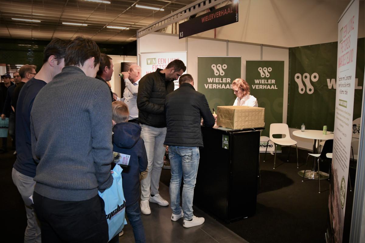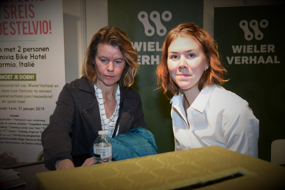 WielerVerhaal mocht vrijdag niet alleen Jelle Wallays en Axelle Bellaert op zijn stand verwelkomen. Er was ook een uitgebreid bezoek van Thalita de Jong, de renster van het gloednieuwe Chevalmeire Cycling Team. Het interview met de wereldkampioene veldrijden van 2016 deden we op het groot podium in Hal 1, waarna we op de stand van WielerVerhaal een uitgebreide foto- en handtekeningensessie hielden. Foto’s van Paul Hinninck.