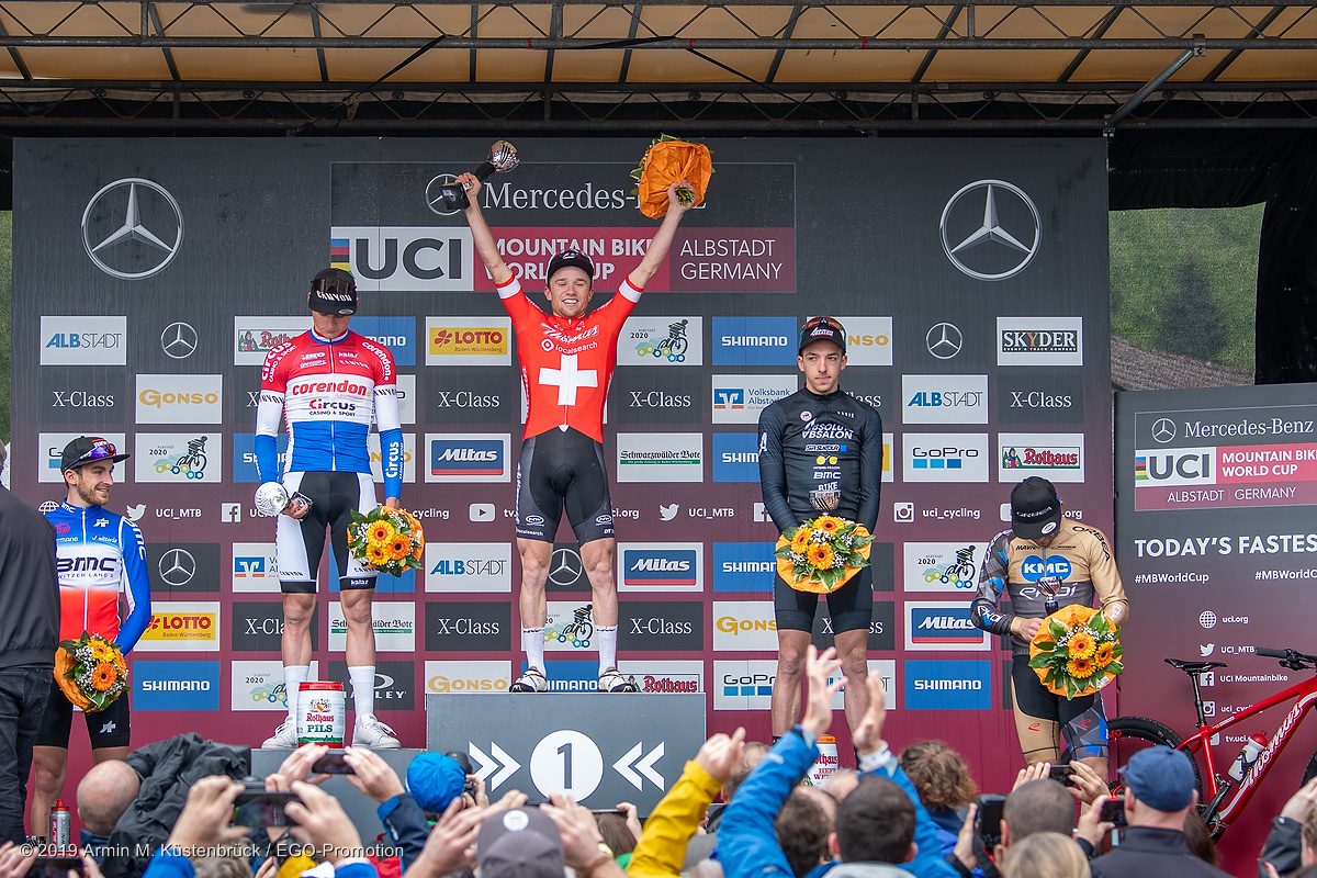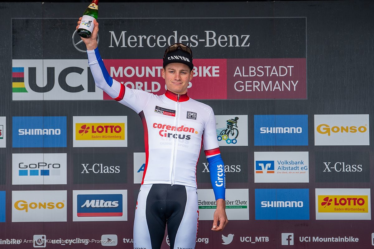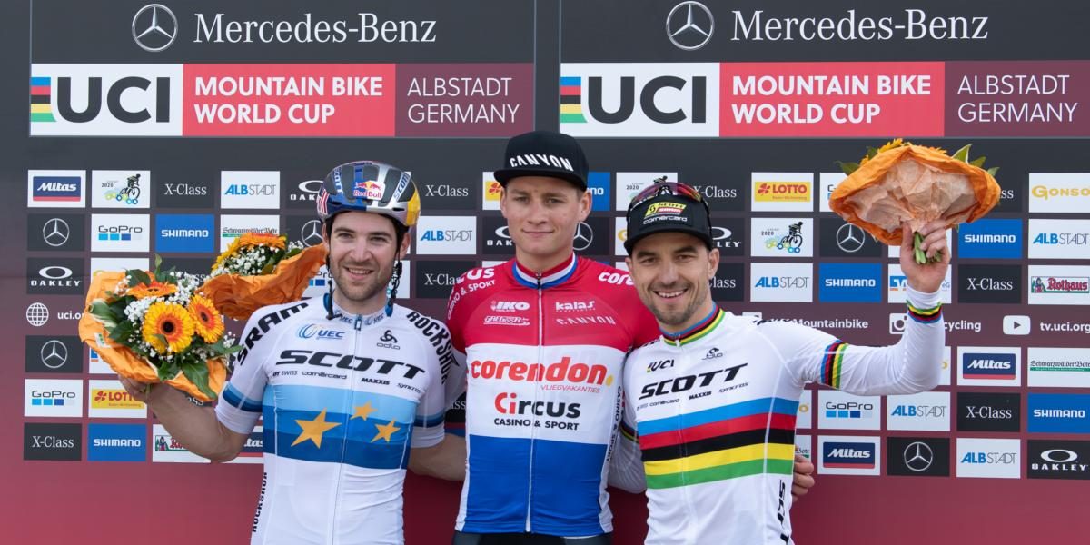 Net als vorig jaar had Van der Poel in Albstadt de Shorttrack gewonnen, het voorgerecht in afwachting van de wereldbekermanche Crosscountry. En dus mocht hij weer op de 1e starten en bovendien met het nummer 1. Een verschroeiende start van MVDP werd het, en hij kreeg Nino Schurter, de Olympisch én 6-voudig wereldkampioen mee. In de 1e helft van de koers wisselde de kopgroep echter continu. Daar hadden de zware weersomstandigheden zeker mee te maken. De Europese kampioen Lars Forster bijvoorbeeld oogde ijzersterk maar ging een paar keer te veel onderuit.
