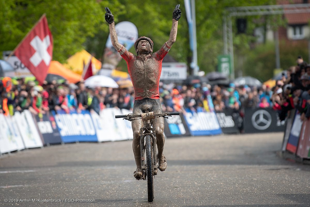 Van der Poel moest de rol voorin evenzeer lossen, net als Schurter. De regen viel met bakken uit de lucht in Albstadt. Het was de Zwitser Mathias Flückiger die in deel 2 de leiding nam en die niet meer zou afgeven. Zelfs Schurter – die de vorge 3edities had gewonnen in Duitsland – kwam niet meer in het stuk voor. Van der Poel vocht zich wel gestaag terug naar een 3e plaats en zou uiteindelijk nog de Fransman Jordan Sarrou te pakken krijgen. Je moet niet vragen wie de sprint om plaats 2 won.