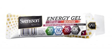 De energiegels van Svensson bevatten allemaal 30gr koolhydraten. Svensson streeft daarmee naar de ideale verhouding tussen energiespreiding en maximale opname (2:1). Er zijn 3 verschillende gels in het gamma, elk met hun eigen typische effecten voor elke specifieke behoefte. Vind jij er je ding in?