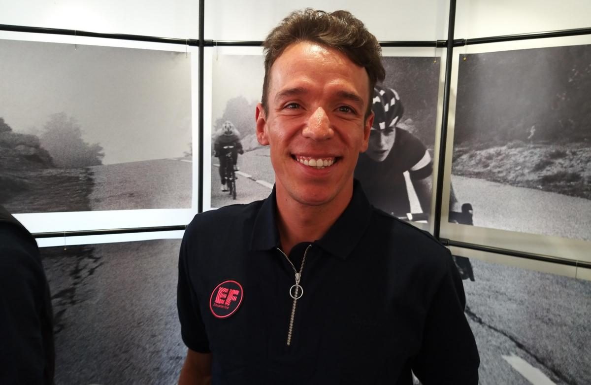 De persconferentie van Education First voor deze Tour de France wordt georganiseerd in het Rapha Club House in de hippe Dansaertwijk in Brussel. En zoals het een goede Colombiaan betaamt, arriveert Uran – om hem draait het toch allemaal bij de Australische formatie – een half uurtje te laat. Maar aan lachen zal het hem niet ontbreken tijdens de persbabbel, waarbij hij vergezelt wordt door teammanager Jonathan Vaughters, eeuwig supertalent en intussen gedoopt tot meesterknecht Tejay Van Garderen, en Tourdebutant Michael Woods. Het wordt een gezapige babbel en Uran – Rigo voor de vrienden – antwoordt kort maar gedecideerd op de vragen – wij waren woensdag 3 juli trouwens de enige Belgische media die kwamen opdagen.