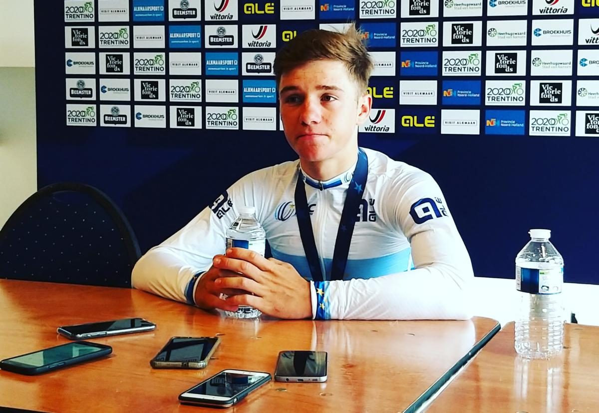 Vol consternatie zat ik afgelopen week na de elitetijdrit naar Remco te staren, bijna lachwekkend geprangd tussen 2 bomen van kerels, maar wel met Europees goud rond z’n nek. Een ‘menneke’, een ‘ventje’, een ‘jochie’. Een snotneus met acne en Justin Bieber-haar.