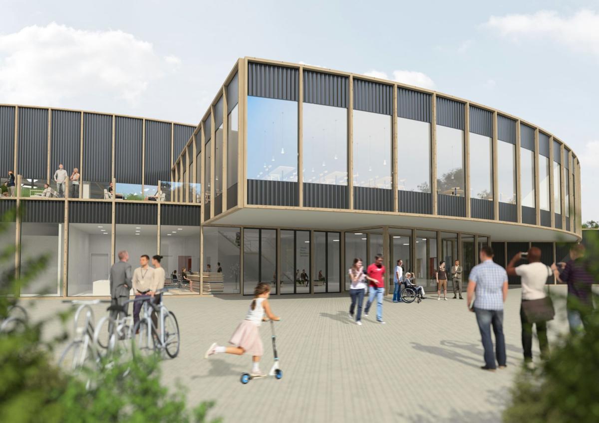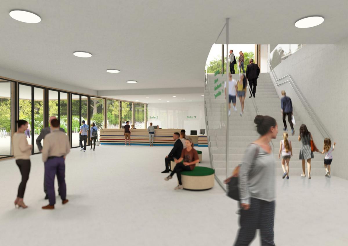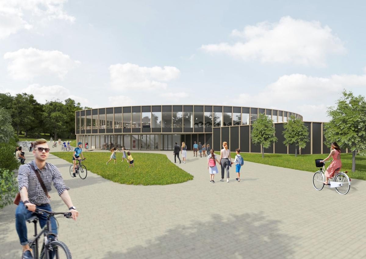 Het Gentse architectenbureau AVApartners tekende samen met DBV-architecten uit Hasselt het winnende ontwerp uit. Geen verrassing, aangezien zij ook bij het Wielercentrum Eddy Merckx en het Stab Vélodrome in Roubaix betrokken waren. Het sportcomplex wordt onderdeel van de bosrijke omgeving, met veel houten elementen.
