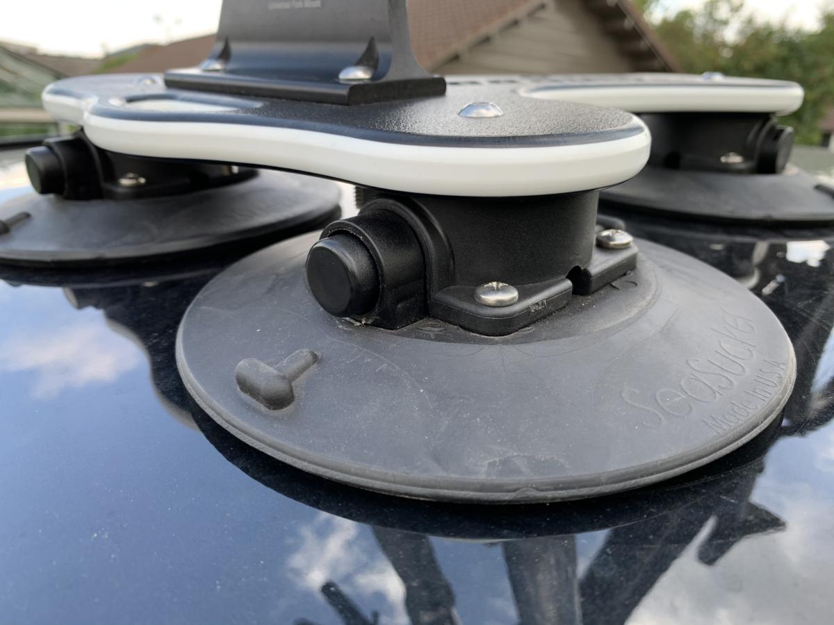 De Talon weer van het dak halen, doe je door met je vinger de nap naar boven te trekken om zo lucht onder de zuignap te laten. Best laat je de SeaSucker niet op je dak staan wanneer je je auto onbeheerd achterlaat, om diefstal te vermijden. Omdat de Talon zo compact is, kreeg die al snel een vast plekje in onze koffer. SeaSucker raadt wel aan om de beschermhoezen voor de zuignappen te gebruiken (schade en UV).