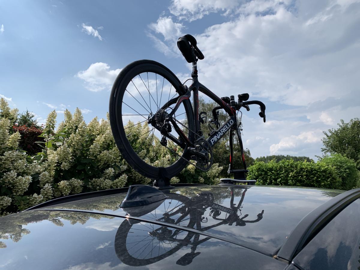 In de praktijk is het monteren van een fiets een kwestie van enkele minuten. Na een paar keer optuigen, plaatsen we vlot onze racefiets met snelspanner op het dak van onze SUV. Bij vastzetten van de fiets letten we op dat de snelspanner zeker niet te hard of te zacht wordt aangespannen. Zodat de fiets mooi stevig vastzit en niet kan bewegen onderweg.