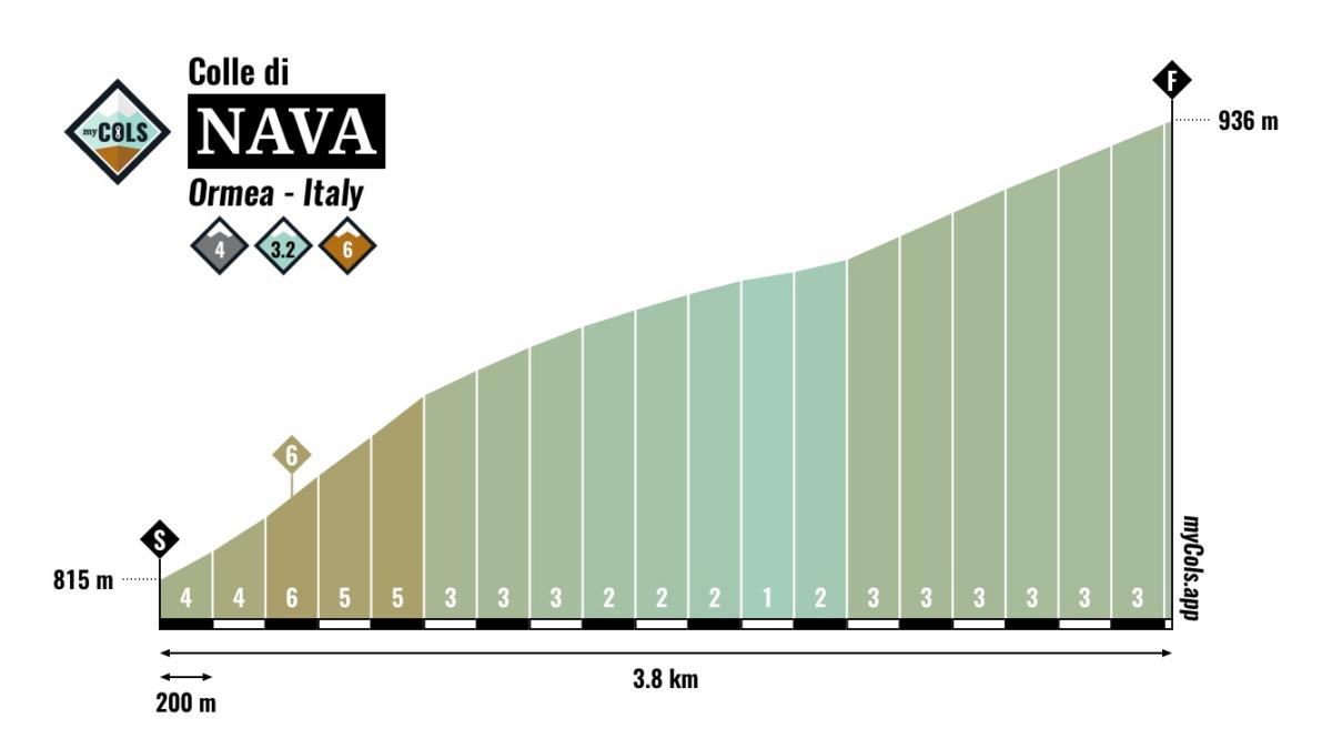 Beklimmingen Milaan-Sanremo: Turchino, Bric Berton, Le Mànie, Tre Capi, Cipressa, Poggio, Niella Belbo, Colle di Nava, Colle del Giovo