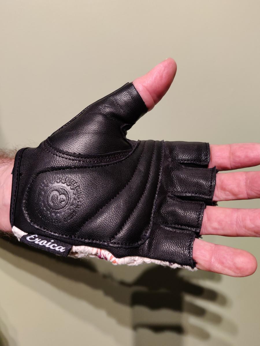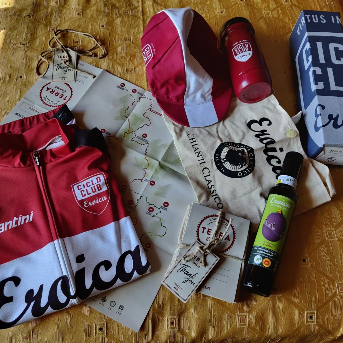 Eroica betekent heroïsch. Straf dat je dat gereden hebt. De rit is immers niet voor doetjes. De ‘korte’ afstand is 96 km lang, telt 1.880 hoogtemeters en 58 km witte mergelwegen of strade bianche. De lange tocht gaat over 153 km, 2.860 hoogtemeters en 70 km onverhard. Bovendien moet je op pad met een oude fiets met veel te grote versnellingen en slechte remmen. En liefst nog in aangepaste kledij. Wollen trui en broek zijn standaard, maar een worstenhelm en oude platte schoenen een pre. De Italiaanse kledingfabrikant Santini, hoofdpartner van L’Eroica, bezorgde ons een complete outfit. De helm en schoenen zullen we voor onze volgende deelname zeker nog upgraden.