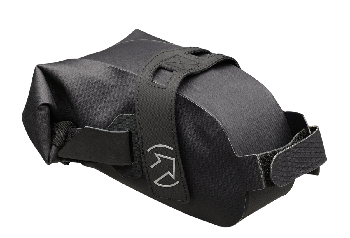 Kenmerken: eenvoudige opbergoplossing voor op de fiets voor essentiële items, wrap(oprol)-design, licht en compact, universele zadelcompatibiliteit, reflecterende rand, bevestigingsriem voor achterlicht.