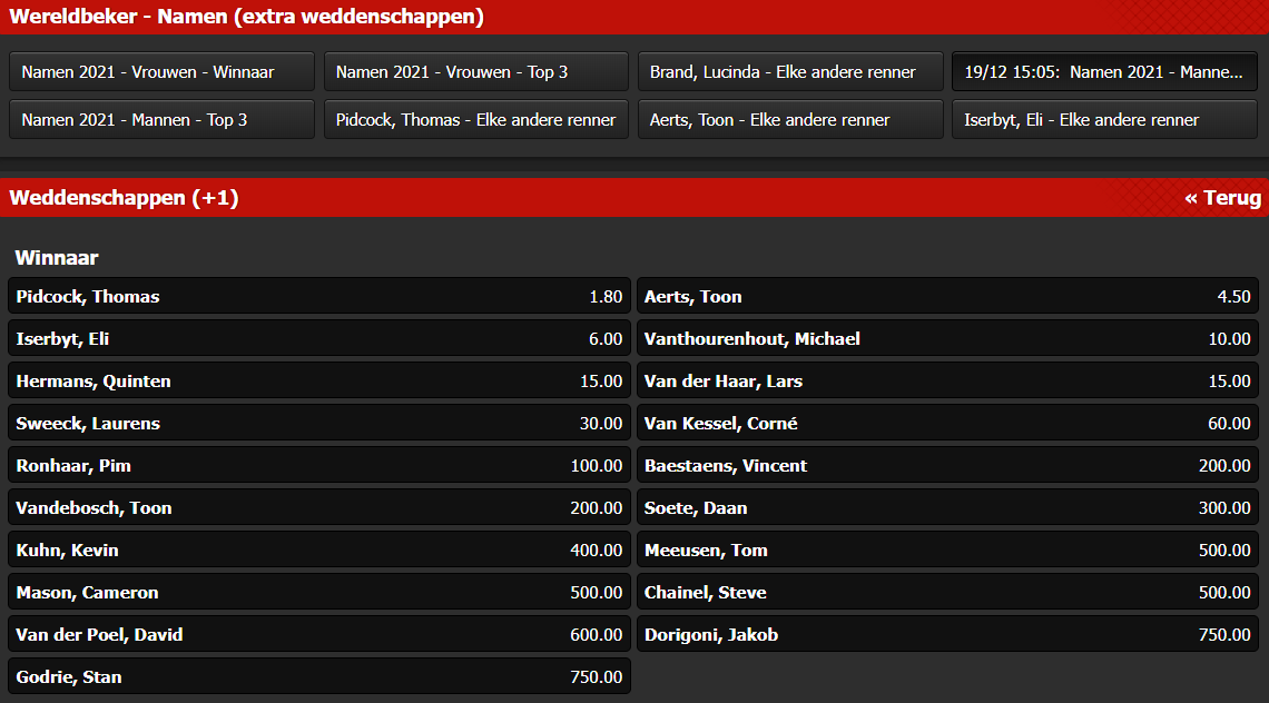 Volgens Bingoal, dé Belgische nummer 1 in wielerweddenschappen, is Pidcock deze zondag inderdaad de te kloppen man. Kijk hier wel notering hij krijgt en hoeveel voorsprong hij al heeft op zijn concurrenten.