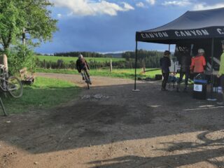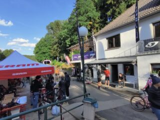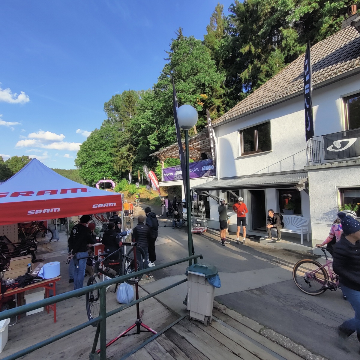 Omdat we zelf de laatste tijd wat weinig getraind hebben en de explosiviteit wat afgebot is, in combinatie met ziekjes zijn andere nog te verzinnen excuses, laten we dit onderdeel aan ons voorbij gaan. Sponsors en exposanten hebben hun tentjes op het expoterrein uitgespreid. Canyon is de lokale hoofdsponsor en showt er zijn offroad gamma. Kledinggigant Giro, onderdelenfabrikant SRAM met Zipp en Time, accessoirespecialist Evoc en navigatie-app Komoot zijn de mondiale sponsoren en zorgen voor meer dan een eenvoudige display. Voeg daar nog een bierstand, wat streetfood, vuurkorven en balen stro bij en het is gezelligheid troef.