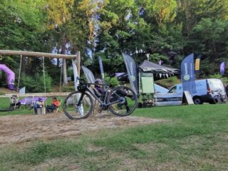 Vanop de straat wijzen de paarse vlaggen van Grinduro je de weg. Bij de inkom worden we allerhartelijkst opgevangen door organisator Carlo van Nistelrooy en zijn team, en krijgen we de eerste nodige inlichtingen. Plaats voor onze campervan links, de inschrijvingen recht voor ons. Met een uitgebreid goodie-pack met ons startnummer en de chip voor de tijdsregistratie trekken we op verkenning. In het centrum van het basecamp is ondertussen de 1e rit al gestart. Nu ja, rit. Een spurtje van zowat 2 km bergop zorgt voor animo.