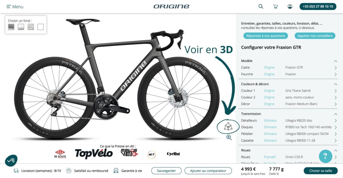Aangezien Origine al van bij de start volop bij het custom verhaal zit, waren zij bij de eersten om een configurator voor fietsen aan te bieden. Bij Origine kan je immers je fiets van het frame af helemaal zelf aankleden. Zelfs wanneer bijvoorbeeld de keuze tussen de wielen niet jouw smaak zijn, kan je toch nog de fiets kopen. En er daarna thuis je eigen wielen onder zetten. Of: met de Origine-configurator kan je je fiets samenstellen naargelang je eigen wensen, je rijstijl, je bouw en, uiteraard, je budget. De voorbije 10 jaar configureerden niet minder dan 4 miljoen liefhebbers hun eigen Origine. De Noord-Franse fietsfabrikant zag zich gesterkt in zijn aanpak en schakelt daarom een niveautje hoger. Vanaf nu kan je je fiets samenstellen in 3D!