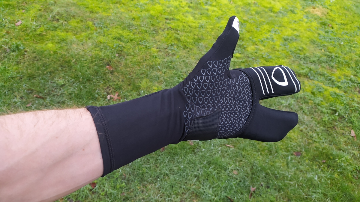 Ook deze handschoenen zijn net iets anders dan we gewend zijn. Vooral de extra laag die je over je vingers kunt trekken om wat extra bescherming te hebben, valt op. Deze extra laag zit verstopt op de bovenkant van je hand en haal je er heel gemakkelijk uit, of stop je ook weer heel snel terug weg wanneer het weer bijvoorbeeld wat warmer wordt. Wat we ook heel aangenaam vinden, is de lengte van de handschoenen. Deze komen extra hoog op je polsen zodat deze ook goed warm blijven. Zo blijven we uiteindelijk warmere vingers houden. Want het bloed dat door onze polsen naar onze vingers loopt, zal de kans niet krijgen om af te koelen en geraakt zo warm tot aan onze vingertoppen.