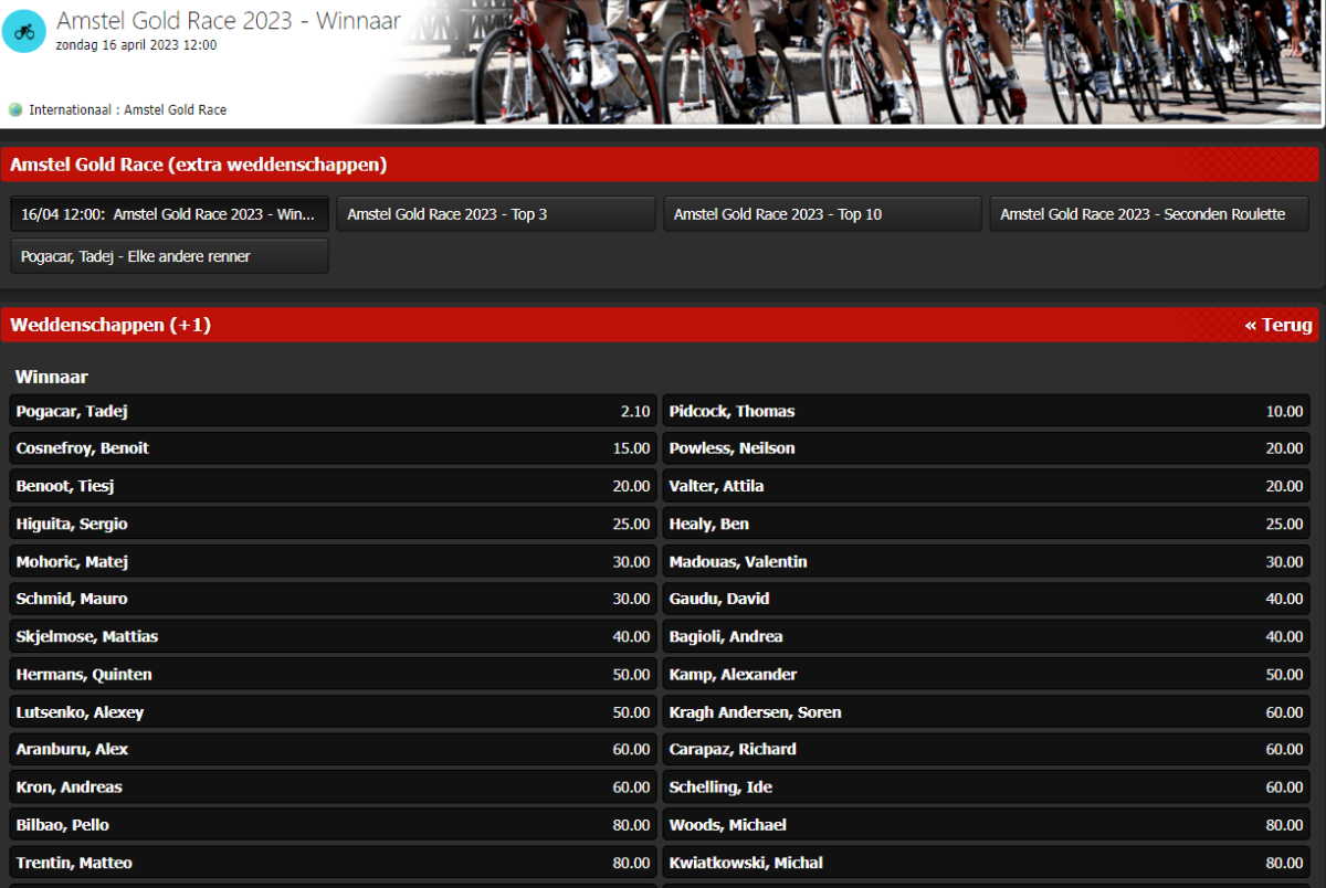 Pogacar favoriet voor deze Amstel? Check bij Bingoal wie toch een beetje voor concurrentie kan zorgen!