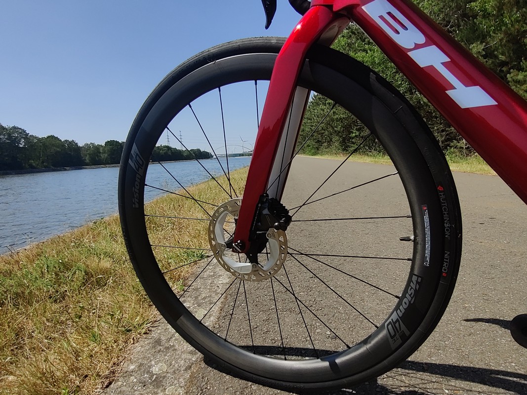 Op onze testfiets zien we verder nog Vision 40 TC-wielen met 28 mm Hutchinson Nitro 2 banden. Het is de 1e keer dat we deze banden rijden, dus ook dit wordt een ontdekking.