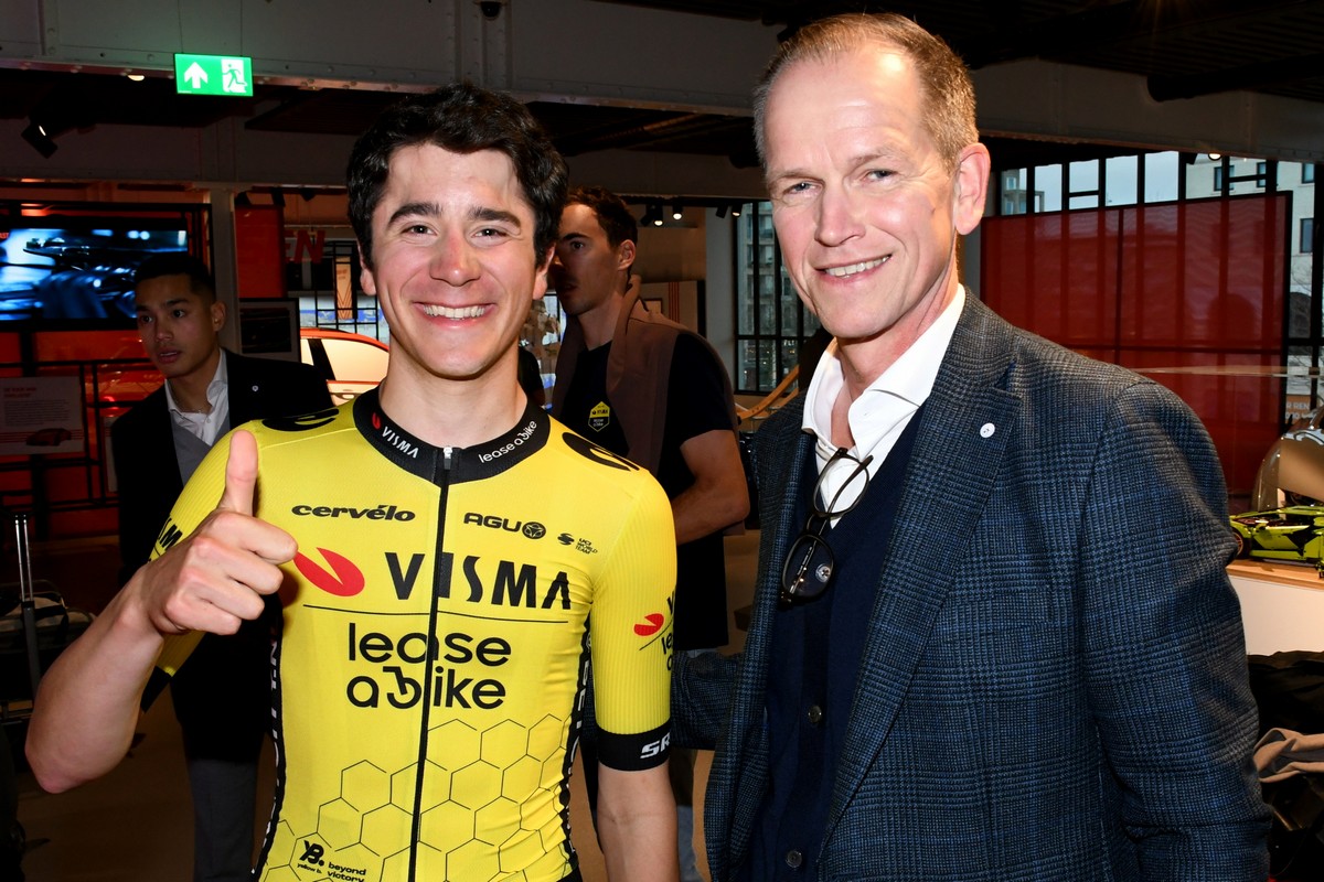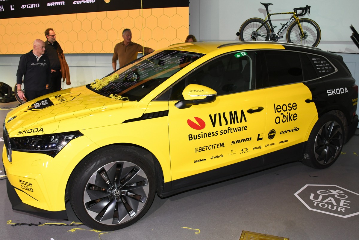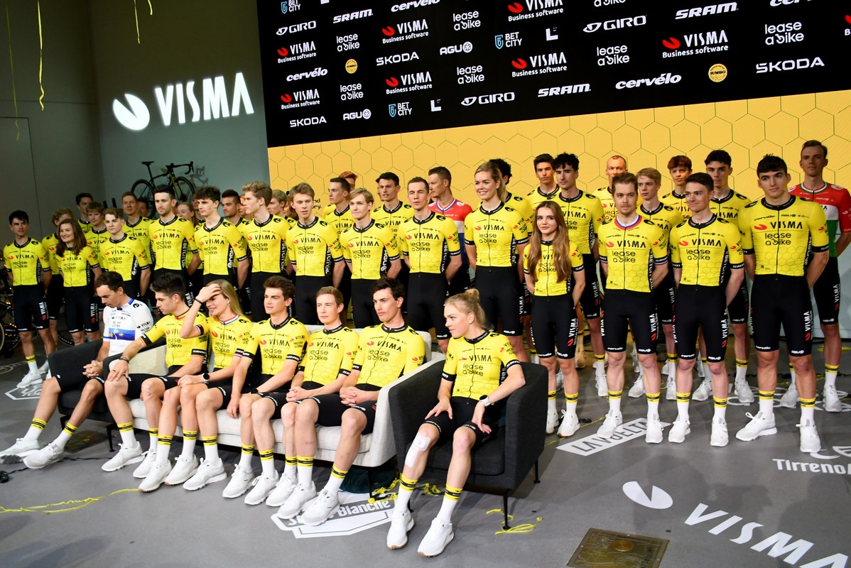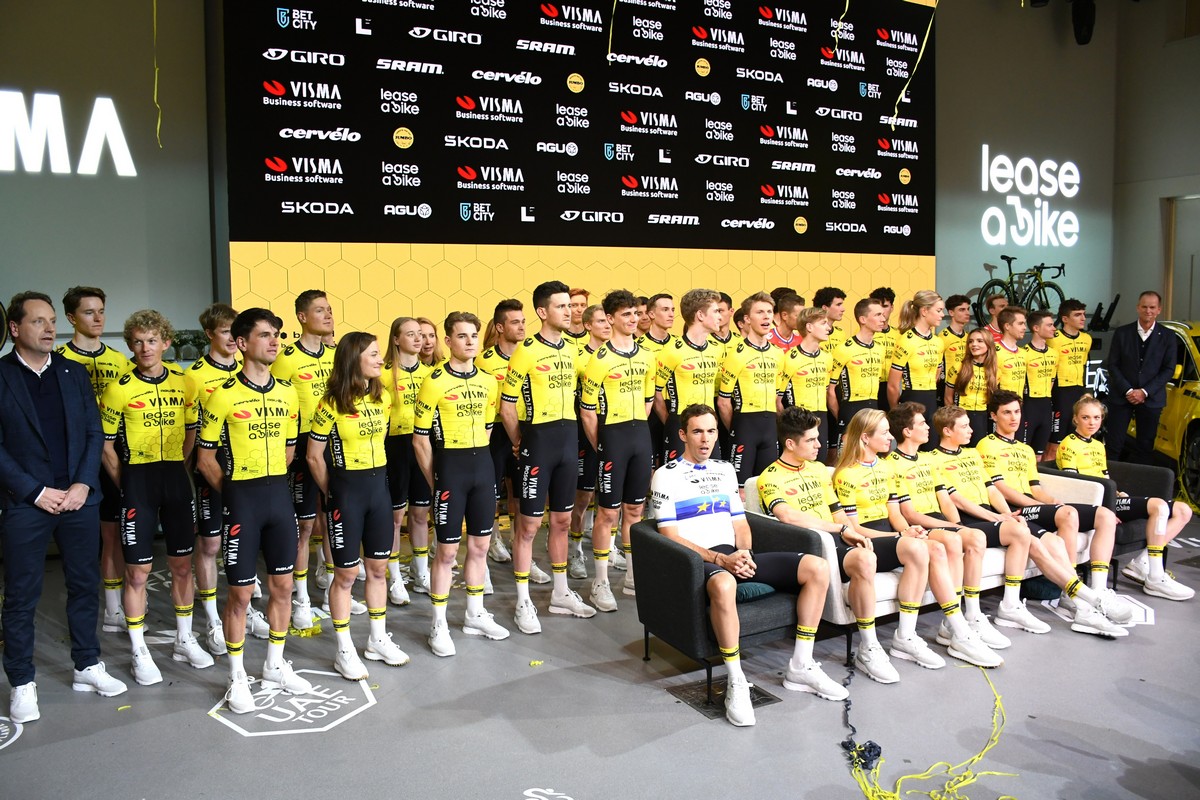 Team Visma | Lease a Bike lanceerde tijdens de ploegenvoorstelling in Amsterdam het tenue voor het wielerseizoen 2024. Met de nieuwe combinatie van Visma en Lease a Bike als hoofdsponsors wordt een nieuwe start gemaakt die voortborduurt op alles wat de ploeg de laatste jaren heeft gepresteerd en opgebouwd. Dat komt nadrukkelijk tot uiting in het tenue, waarin geel en zwart nog altijd de boventoon voeren. Onze huisfotograaf Guido De Meyer was erbij.