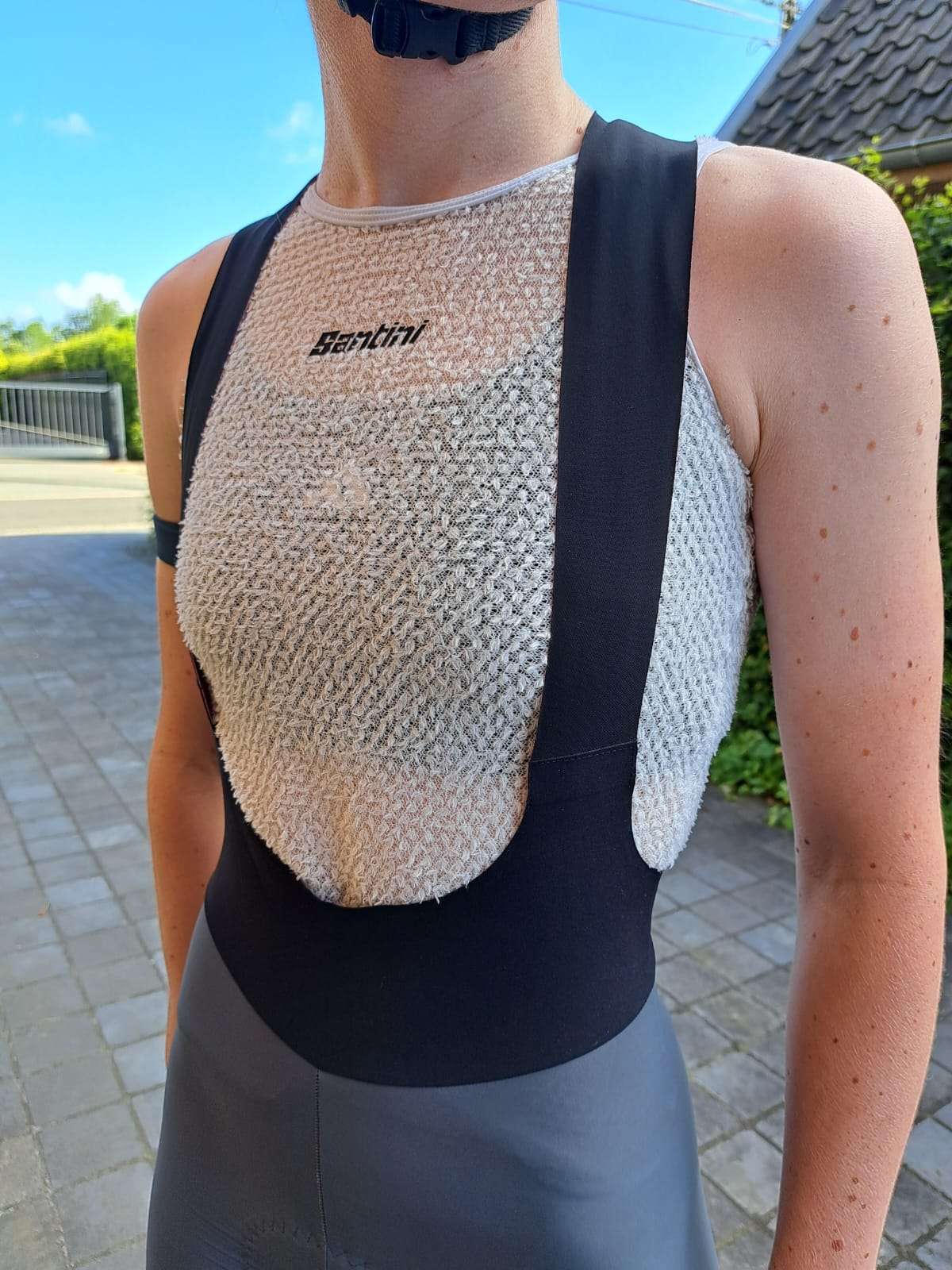 Eind juni 2024 trakteerde de zon België dan eindelijk op zomerse temperaturen tot wel 30 graden. Ideaal om te fietsen en om dus ook deze nieuwe lijn uit te testen. De fitting van de broek en truitje is duidelijk gemaakt voor het profpeloton. Het truitje en de broek spannen mooi rond onze figuur heen, zonder verstikkend aan te voelen. De mouwtjes zijn wat langer gemaakt, zoals het de laatste jaren een terugkomende trend is bij de profs. De broek is niet te laag uitgesneden en geeft zo ook de onderbuik genoeg compressie.