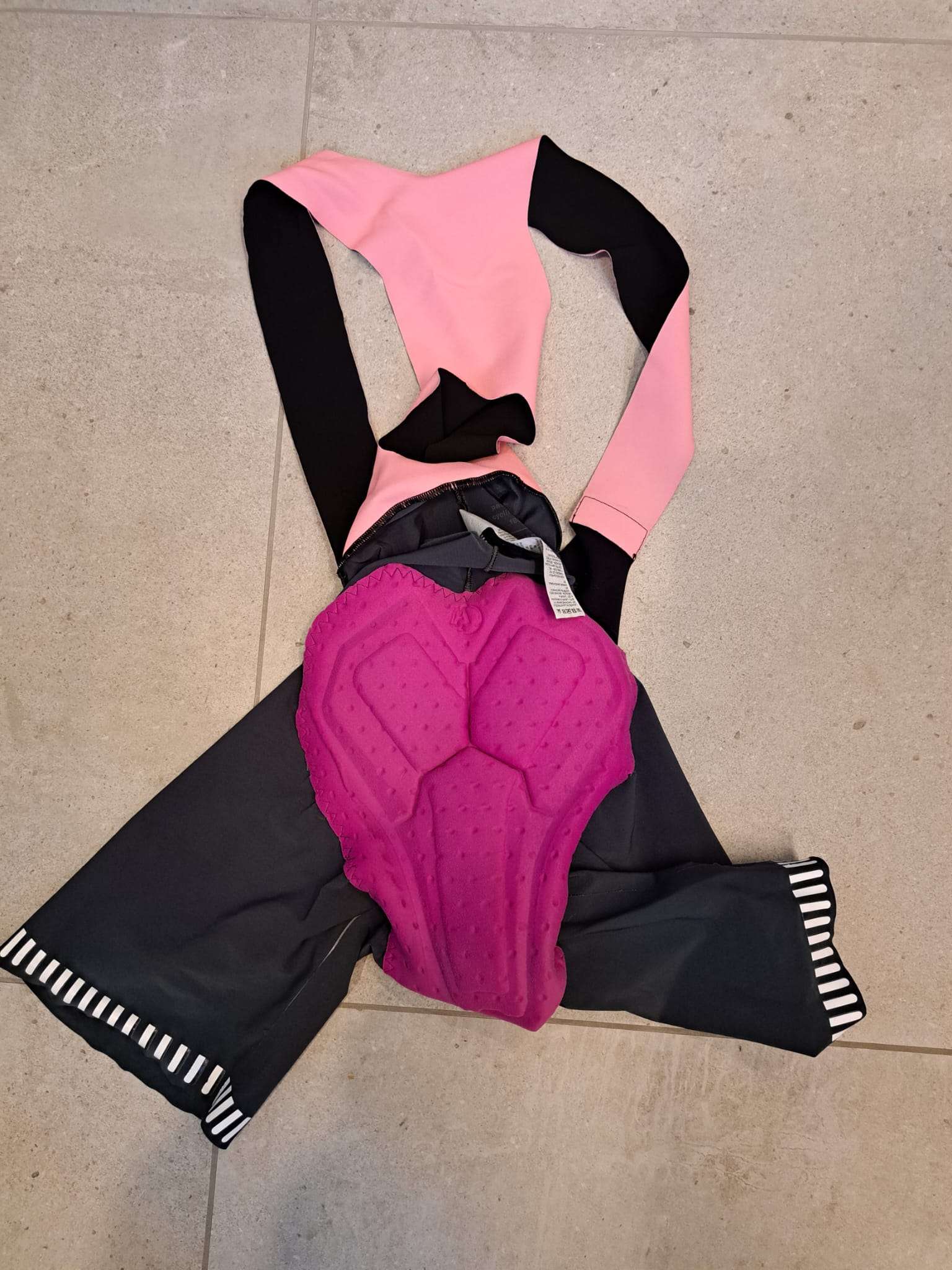 Bij de broek is die techniek vooral terug te vinden in de gebruikte stof. Een ultradun nylon stofje, dat toch genoeg compressie geeft rond de spieren. De zeem is van de beste kwaliteit van al hun reeksen. De C3-zeem bevat schokabsorberende gelpads rond je zitbeentjes en geeft speciaal voor vrouwen ook voldoende padding en steun vooraan. De broek wordt op zijn plaats gehouden via kleine siliconen lijntjes aan het uiteinde van de pijpen.