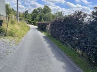 De eerste hectometers verlopen nog gemoedelijk, met enkele cijfers. Na 200 meter schakel je over naar dubbele cijfers – en vermoedelijk naar je binnenblad – waar het geleidelijk aan van 10 naar 12 en uiteindelijk 15% gaat. Het zwaartepunt ligt op het einde, vlak voor je de top van de geasfalteerde route bereikt. Die ligt wat verloren in een bochtje, met een vrij technische afdaling als vervolg. Er is hier weinig plaats, dus met het plaatselijke verkeer neem je maar beter geen risico’s.