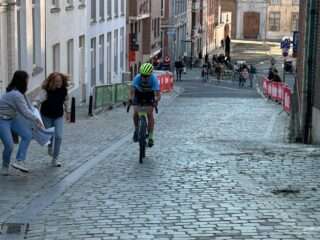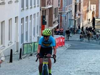 “Het is lastig in te schatten hoe laat ik het beste naar de startbox kan gaan. We zijn niet met heel veel deelnemers, maar ik wil wel voldoende vooraan staan. Het 1e stuk in Halle is namelijk cruciaal, dat weet ik nog van de verkenning. Smalle wegen, gravel en modder, gecombineerd met een hoop mensen, kunnen snel voor chaos zorgen. Dus een klein uur voor de start sta ik in de startbox. Perfect op tijd. Niet helemaal vooraan, maar gelukkig ook niet achteraan. Langzaam begint de stress toch op te komen. Zoveel mensen, overal die verschillende nationale truien om me heen. En de spanning die in de lucht hangt door de zenuwen bij vooral de anderen. Het maakt het allemaal net wat spannender.”