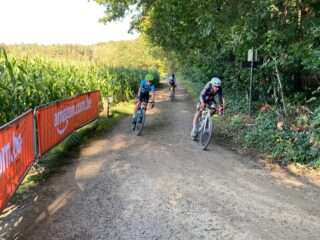 Floor Van Elsacker: “Om 12u20 klinkt het startsignaal, en meteen is het dringen geblazen. Iedereen wil vooraan zitten, wetende dat de smalle en technische stukken er snel aankomen. Al snel volgt een scherpe bocht langs het water, waarbij de rensters aan de binnenkant een voet aan de grond moeten zetten. Hier komt mijn ervaring in het veldrijden goed van pas: ik weet me er soepel tussendoor te manoeuvreren en blijf mooi bij de groep.”