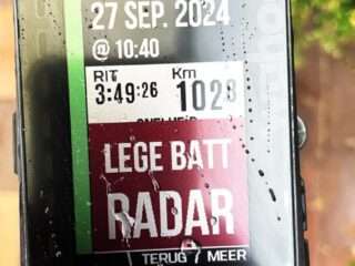 Voor een lange dagtocht hadden wij hem op Daylight flash staan (90 lumen). Na 7 uur gaf hij aan dat de batterij bijna leeg is. We hadden nog 1 streepje over en schakelden om naar daylight 25 lumen. Zo hield hij het nog zeker 2 uur uit. Gaat hij bijna leeg, kan je er ook voor opteren om de radarfunctie uit te schakelen, wat je vanop de fietscomputer kunt regelen. De radarfunctie vraagt namelijk de meeste batterij. We kozen dan voor langer gezien worden dan zelf te zien. Je kan de batterij ook opladen wanneer hij in gebruik is, handig voor ultraracers.