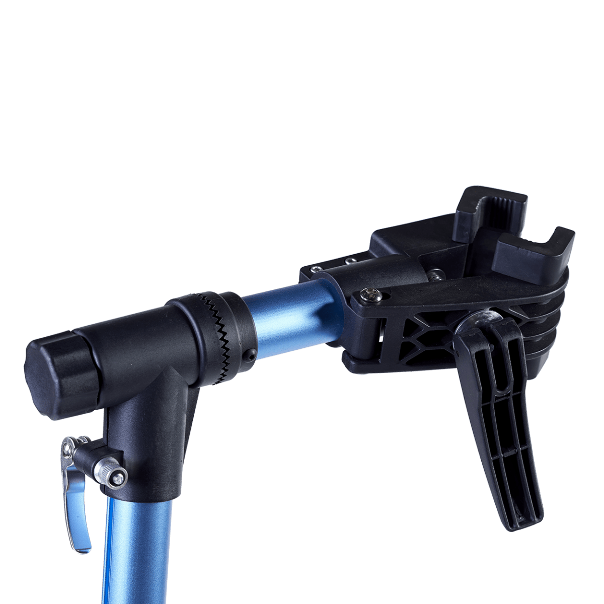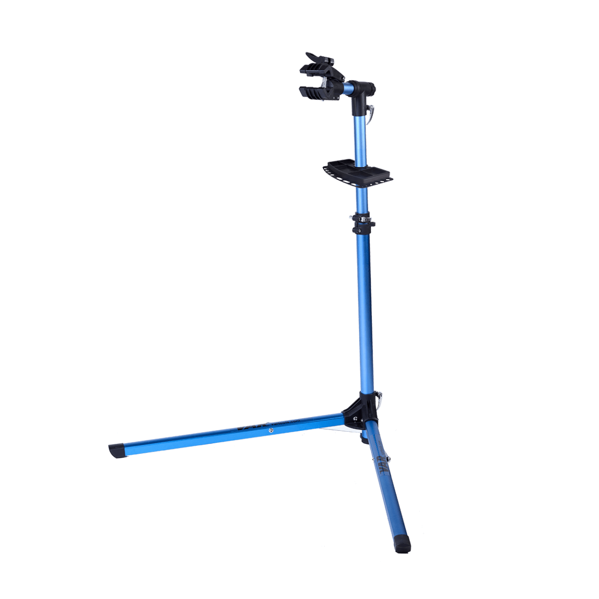 De stand is vervaardigd uit duurzame aluminium buizen met een gewicht van 3,6 kg. Hij is bijzonder stevig en toch makkelijk te verplaatsen, leert onze ondervinding. Ondanks zijn lichtere gewicht kan deze stand een maximumgewicht van 20 kg dragen, waardoor hij geschikt is voor verschillende reparatieklussen. Dit maakt hem multifunctioneel, of het nu in een fietsenwerkplaats is of onderweg.