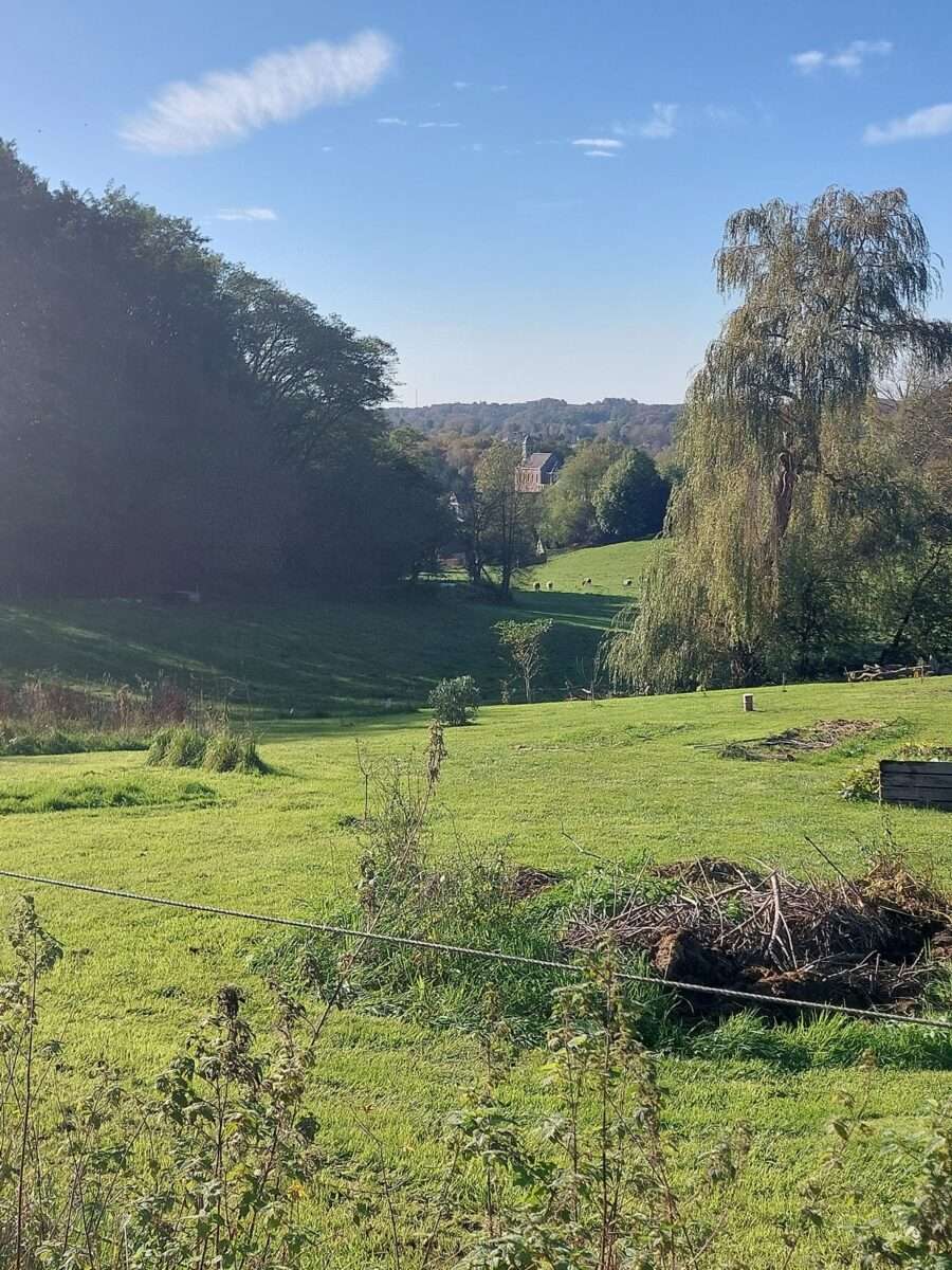 We klieven ons verder een weg doorheen de beboste valleien, en laten heel wat hoogtemeters letterlijk en figuurlijk links (en rechts) liggen. In Chaumont-centrum is het plots schrikken wanneer we de Rue Lahaut opdraaien. Uit het niets doemen er stevige stijgingspercentages op waardoor we amper oog hebben voor de pittoreske Eglise Saint-Bavon. Tot onze verbazing stellen we later vast dat er op Climbfinder geen spoor van deze beklimming terug te vinden is.