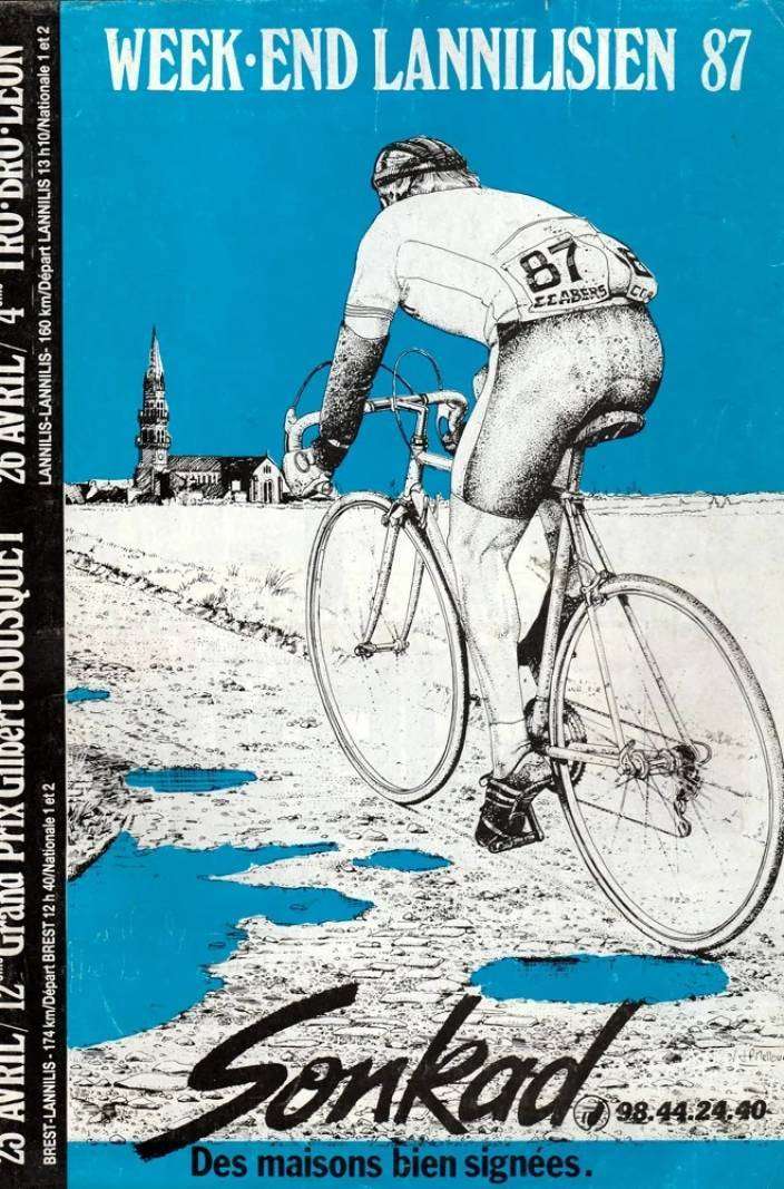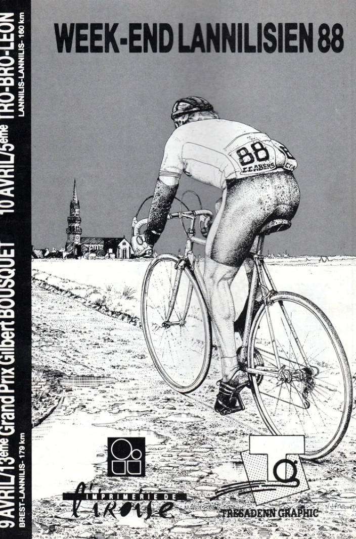 Jean-Paul Mellouët liet voor het eerst zijn talent als tekenaar zien in de ondergrondse metro van Brest. Het was dan ook niet meer dan logisch dat hij de taak op zich nam om de affiches van de 1e editie van Tro-Bro Léon te ontwerpen. We kunnen verschillende periodes in zijn artistieke carrière onderscheiden. Eerst stelde hij een visie voor op de benen van Bernard Hinault en Marc Madiot. Na een 1e editie in zwart-wit volgde hij hetzelfde thema met verschillende kleuren.