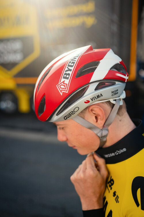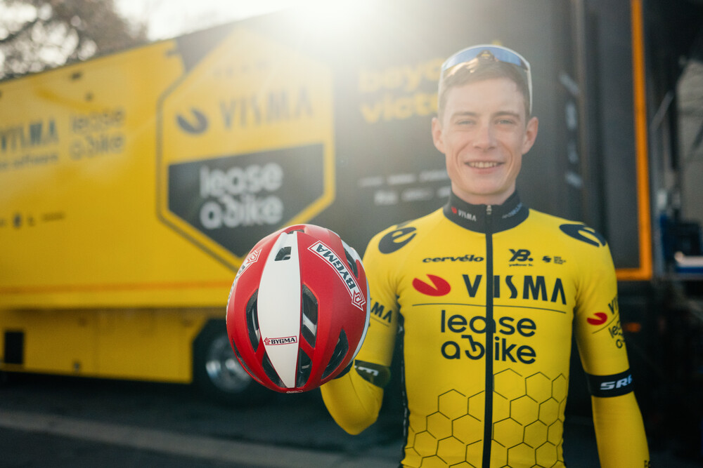 Team Visma | Lease a Bike is trots om de verlengde samenwerking met Bygma, de Deense leverancier van bouwmaterialen, aan te kondigen. Als onderdeel van deze vernieuwde samenwerking zal Jonas Vingegaard gedurende het hele seizoen een nieuwe, speciaal ontworpen helm dragen. Je zag hem wellicht al passeren tijdens de openingsetappe van Parijs-Nice 2025 op zondag 9 maart.
