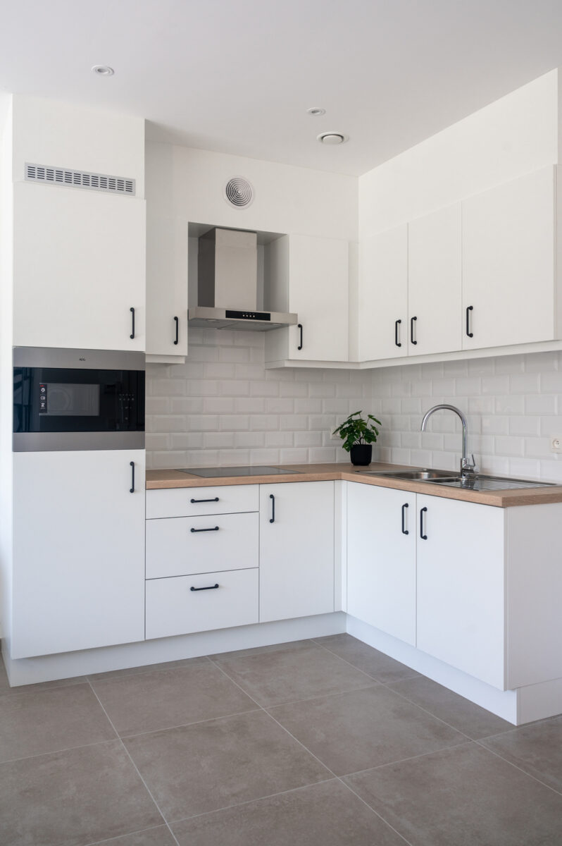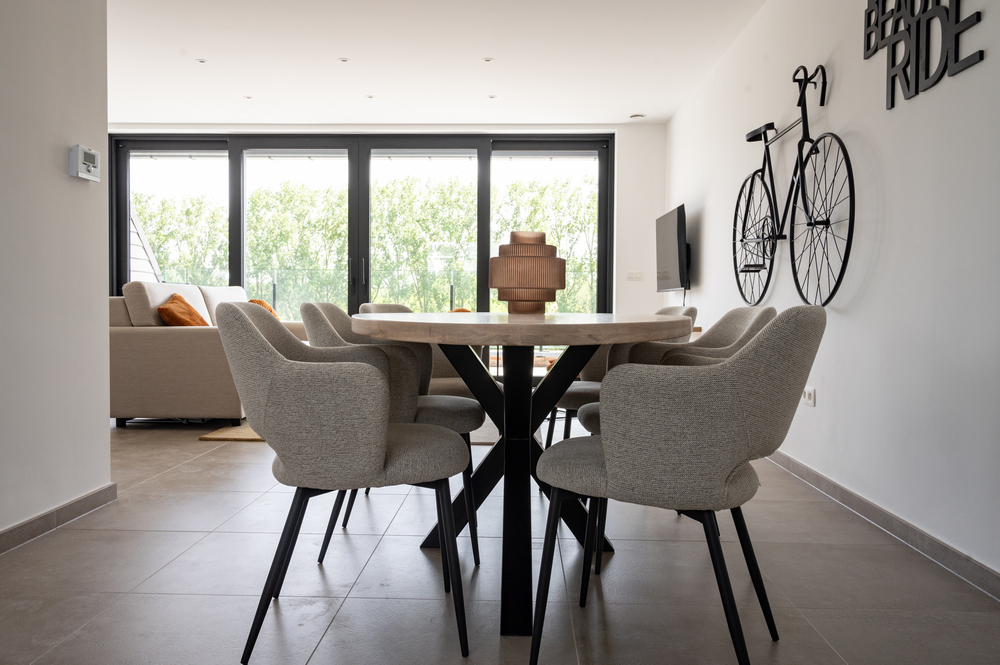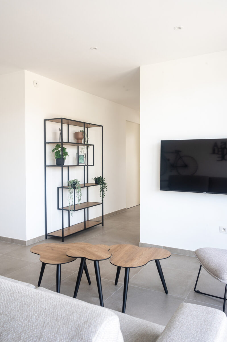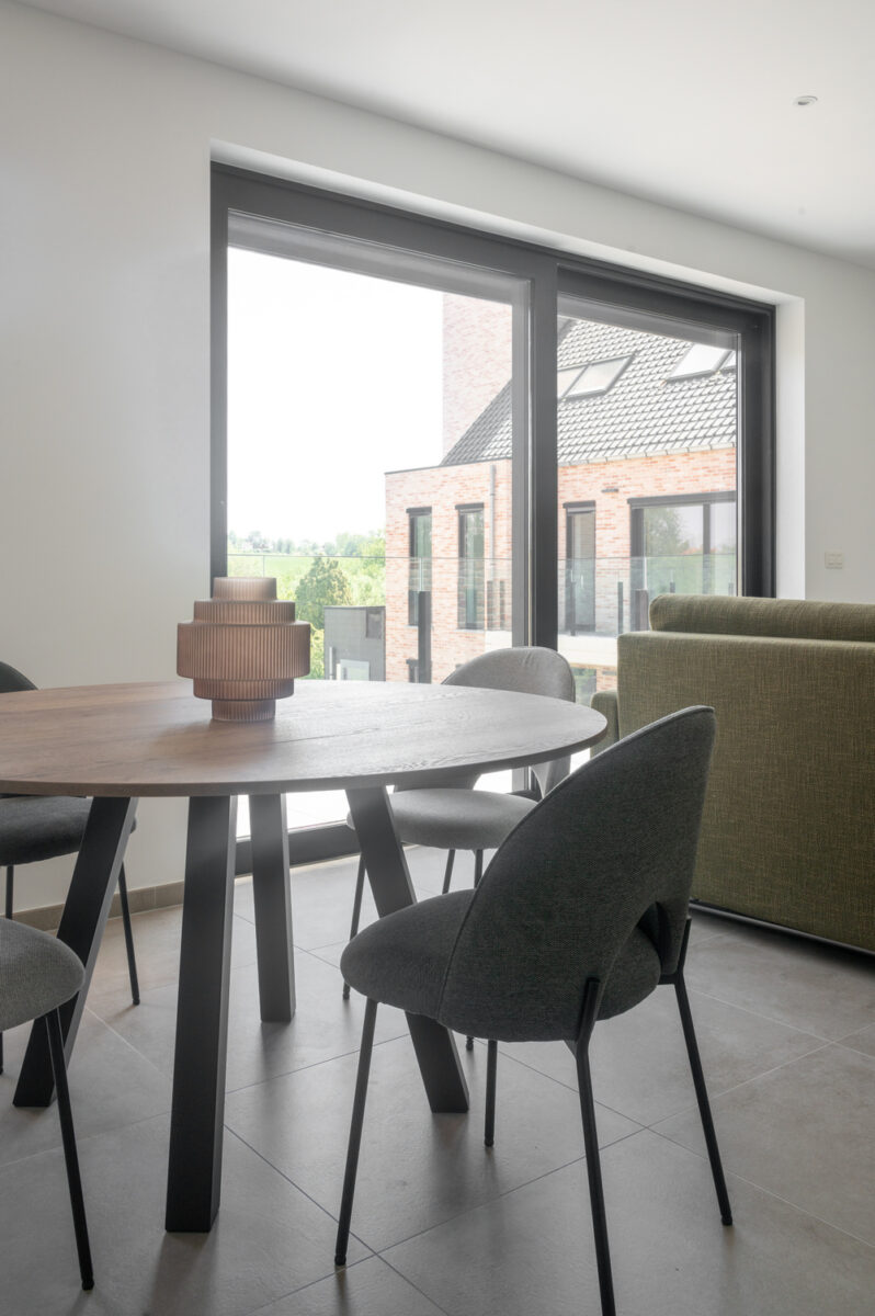 “Maar de 32 reeds gebouwde entiteiten waren te klein om er volwaardige residentiële appartementen van te maken”, duidt Guy De Vreese. “Aangezien elke wooneenheid uitgerust was met keuken, badkamer, verwarmingsinstallatie en elektriciteit- en watermeter, was het geen optie om er telkens 2 te maken van 1. Van de nood een deugd makend, dienden we een aanvraag in om er vakantiewoningen van te maken. Toerisme Vlaanderen was vragende partij naar meer van dergelijke projecten. En na veel 5’en en 6’en keurden zowel de gemeente als de provincie het project goed.”