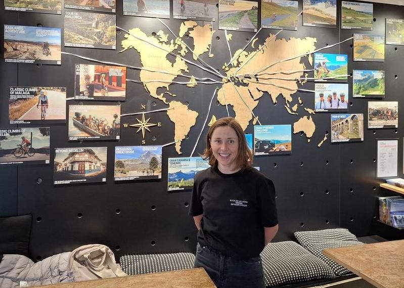 Louise wijst op een bord, vol gepind met foto’s van droombestemmingen. “We doen natuurlijk begeleide fietstochten in Girona, maar we mikken veel ruimer. Onze ambitie is om over de hele wereld de beste plaatsen om te fietsen te vinden. Ik vind het heel cool om research te doen naar plekken waar ik zelf wil gaan rijden. Ik reisde al altijd met de fiets en werd daar volledig verliefd op”, spat de energie er af. “Fietsen is voor ons niet gewoon een sport om in vorm te blijven, het is een levenswijze. We willen mensen helpen om hun doel te bereiken, of dat nu een trip naar het strand is of een uitdagende tocht.”