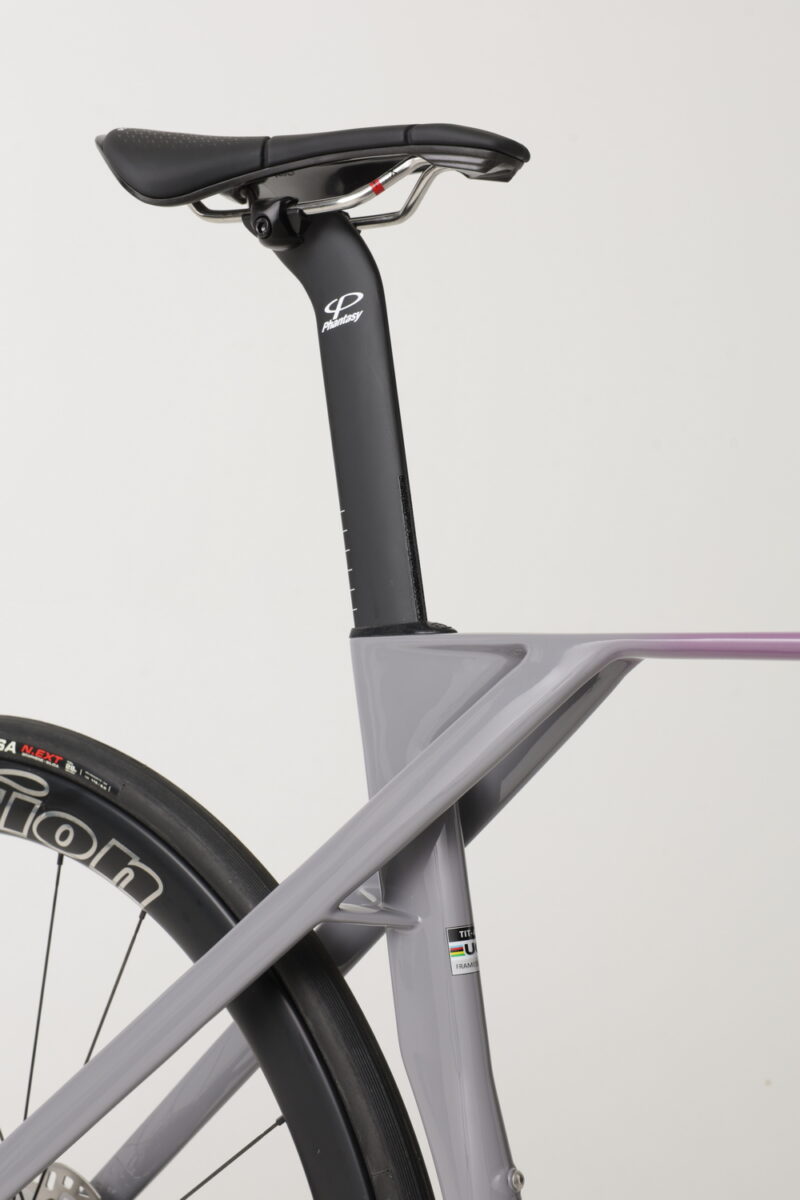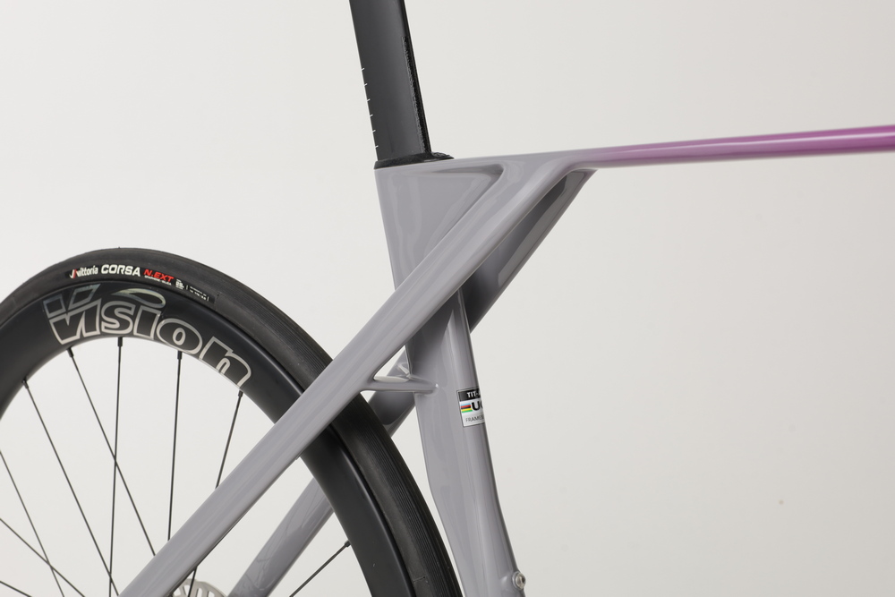 De fiets moet stijfheid en lage luchtweerstand koppelen aan een comfortabele rit. Meest in het oog springend is de dunne bovenbuis, met de gecertificeerde PAT10-technologie. Dit moet haast de dunste bovenbuis op de markt zijn. De oorspronkelijke versie werd dus in 2023 aangepast. Dit om goedkeuring te krijgen van de UCI, die een minimale dikte voorschrijft. Titici bedacht het niet als een aardigheidje, maar met een doel. De bovenbuis is ontworpen om trillingen te absorberen, voor meer comfort en veiligheid. Het bedrijf verwijst naar onderzoek van de universiteit van Parma die de test deed in vergelijking met een standaard frame, waarbij de PAT-buis de vibratie reduceert met 18%.