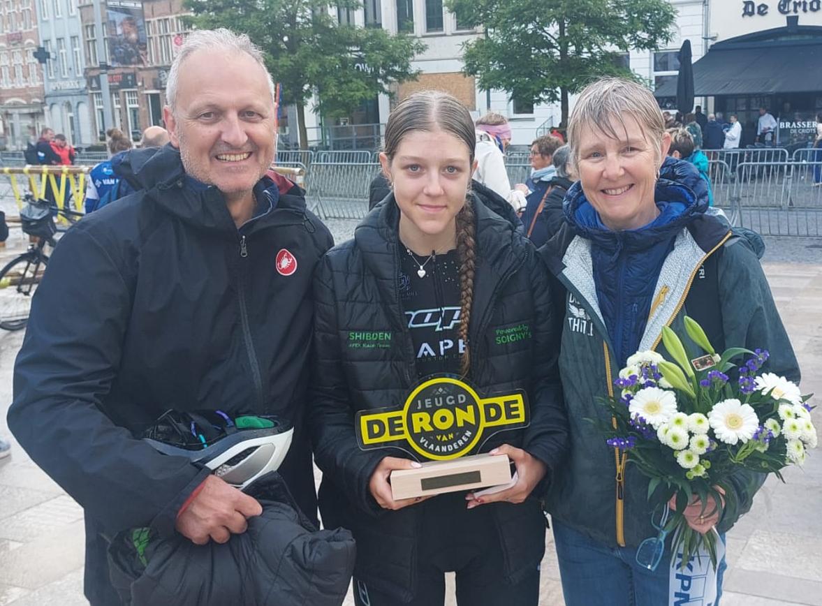 Schotse winnares in de Ronde van Vlaanderen voor meisjes nieuwelingen. Op het vernieuwde parcours in en rond Oudenaarde schudde Melanie Rowe (16) een solo van circa 20 km uit haar benen. De zus van Elliot (18), belofte bij het devoteam van Visma | Lease a Bike, was aangenaam verrast dat ze volhield tot de streep. Ze werd zelfs niet meer bedreigd. Rowe lonkt naar de Europese Jeugdspelen in Skopje.