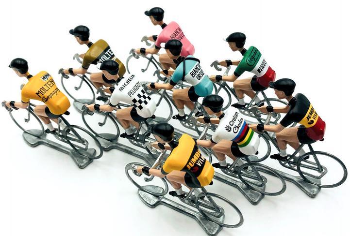 De miniatuurrenner van Flandriens blijft 1 van de absolute favorieten. Handbeschilderd, retro en een tikkeltje nostalgisch – deze kleine helden brengen meteen sfeer op je bureau of boekenplank. Ze zijn klein, maar maken iets los. Voor veel vaders roept zo’n figuurtje herinneringen op aan de koers op tv, de 1e keer op een stalen ros of die ene held in het peloton. Voor jonge papa’s zijn het hun helden op de fiets, in de teamkleuren van pakweg Visma | Lease a Bike of Soudal Quick-Step. Cycling Lifestyle biedt ze in alle mogelijke teamkleuren aan – van oude gloriën tot hedendaagse ploegen. 1 op een kast is mooi. 5 naast elkaar maakt een klein peloton dat leeft.