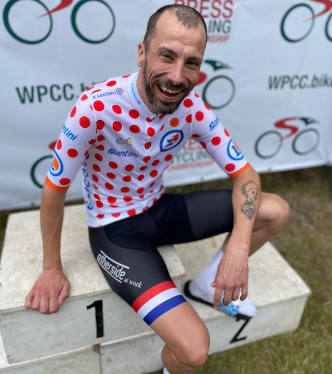 De kans bestaat dat je de afgelopen jaren wel eens een stuk van Tijmen Moltmaker las op Het Is Koers of bij Soul Cycling Magazine, maar de 45-jarige Nederlander kan zelf ook flink met de fiets rijden. Op het WK voor journalisten won hij goud in de tijdrit, de hill sprint en de wegrit en tussendoor verzamelde hij in de gran fondo L’Etape Denmark ook elke trui die er te winnen valt. “Vroeger vond ik fietsen leuker dan dat ik er goed in was, maar de laatste jaren word ik almaar beter”, licht de hardrijder uit Lent zijn successen toe.