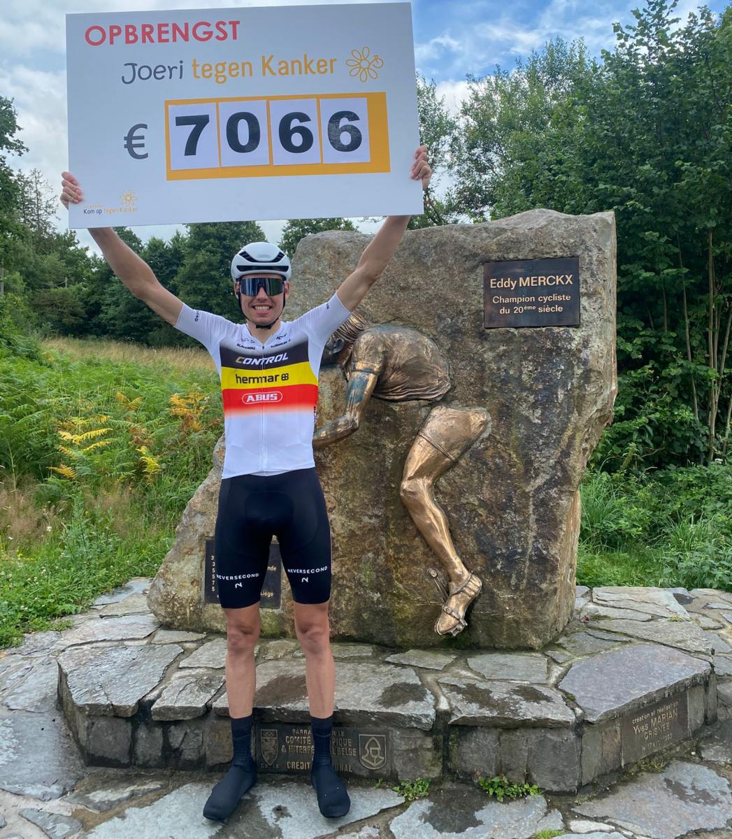 Wat Joeri Deleener deed, ging veel verder dan sportieve prestaties. Zijn actie ‘Joeri tegen Kanker’ was een krachtig gebaar voor iedereen die zelf, of via een naaste, geconfronteerd wordt met kanker. Met zijn inspanning bracht hij niet alleen een mooi bedrag van 7.066 euro binnen op voor Kom op tegen Kanker, maar ook aandacht voor het belang van het blijven strijden op élk vlak. Ook zijn uitrusting trok de aandacht. Deleener fietste in een gepersonaliseerd tenue van 10u Cycling, met een duidelijke knipoog naar de Belgische driekleur. “Ik wilde iets dragen dat symbolisch past bij deze dag.”