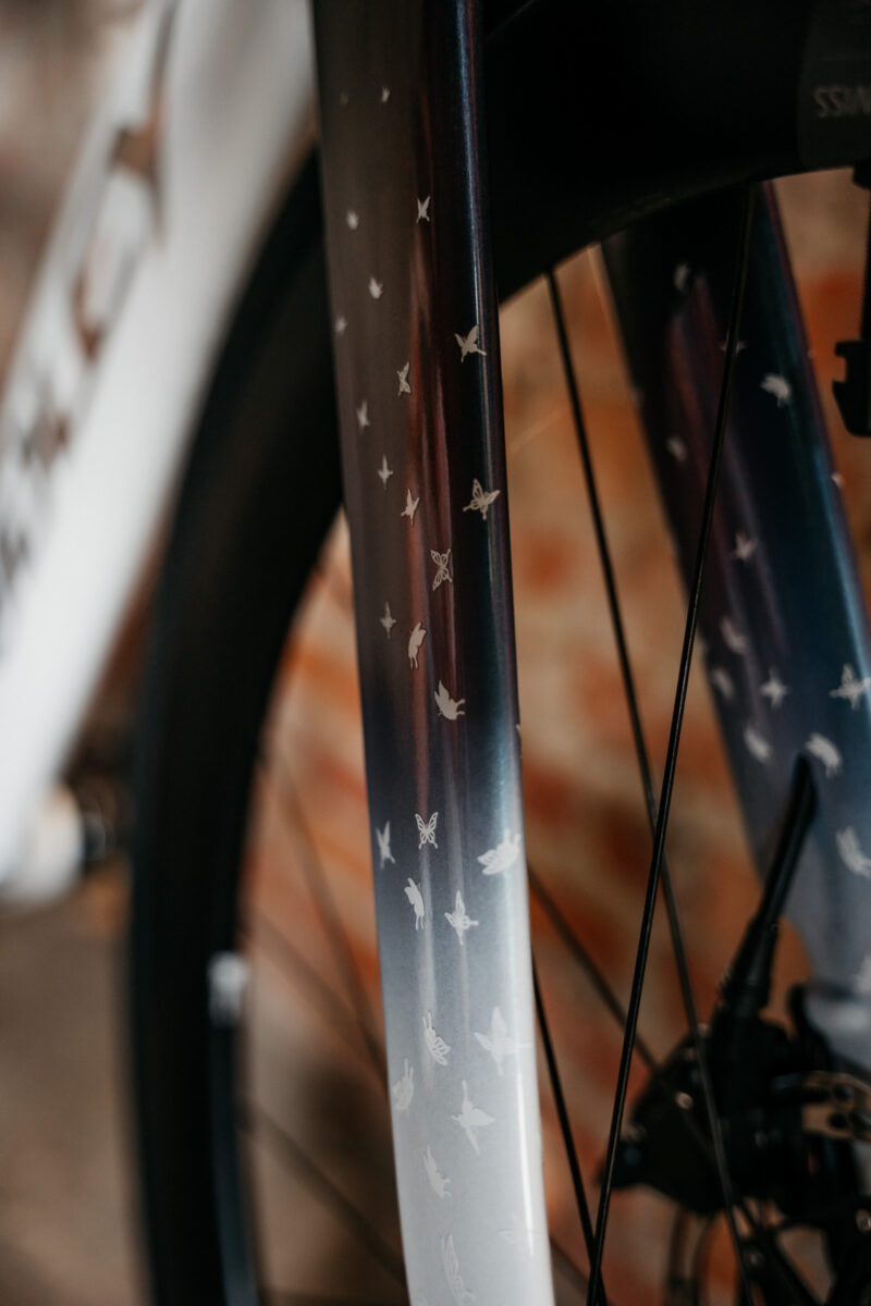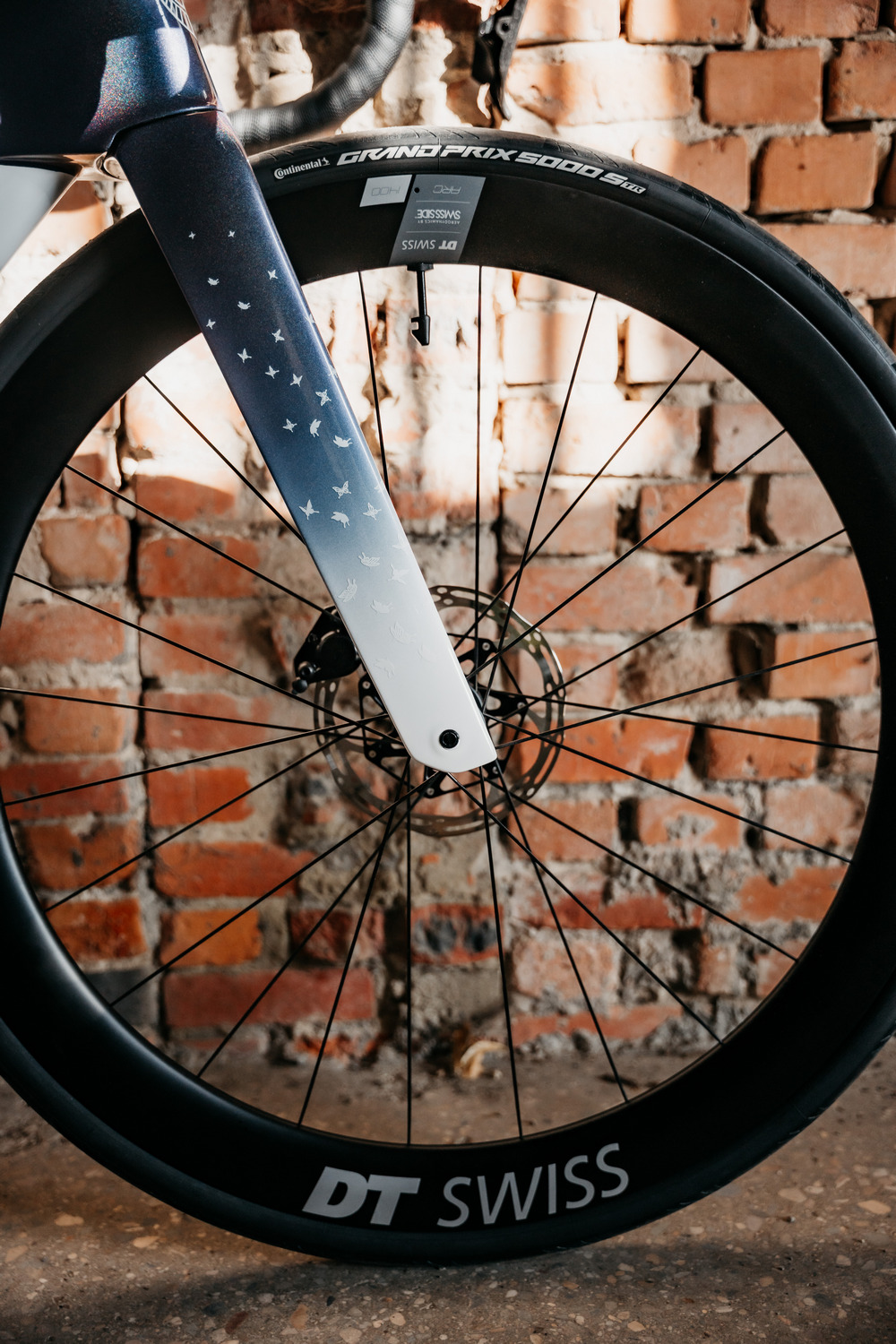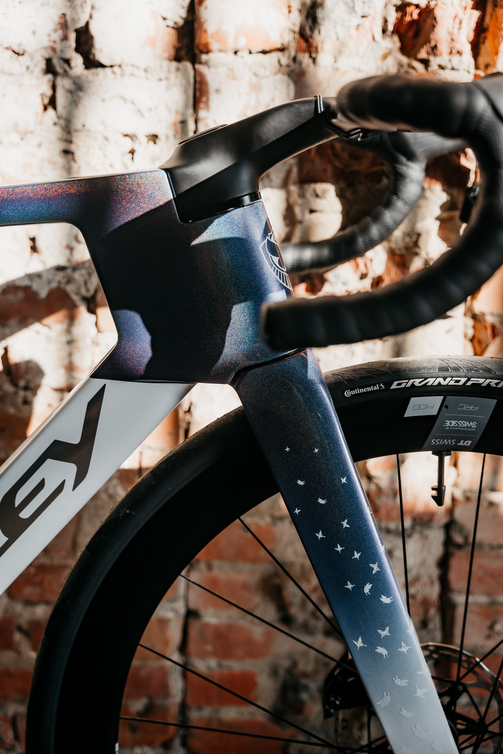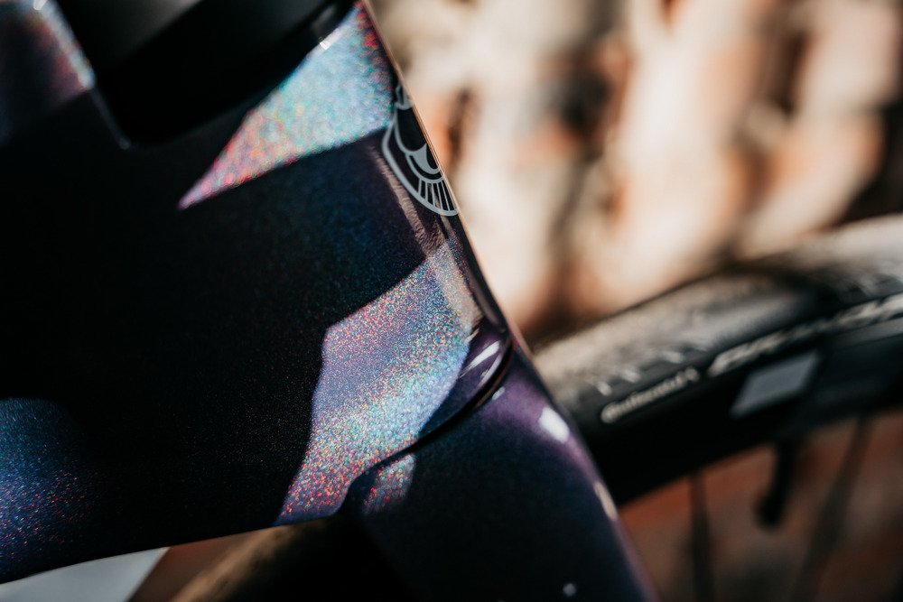 Daarbovenop zorgt een prismatische afwerking voor een regenboogachtige olievlek-glans. Subtiele Tomorrowland-elementen en zilverkleurige Ridley-logo’s maken het geheel af. De lak maakt van de fiets een visueel statement, maar onder de oppervlakte schuilt de bekende Ridley-prestatietechnologie: aerodynamisch geoptimaliseerd, raceklaar en lichtgewicht, wat je ook wel mag verwachten van de fietsen waarop de renners van Uno-X het hoogste niveau halen.
