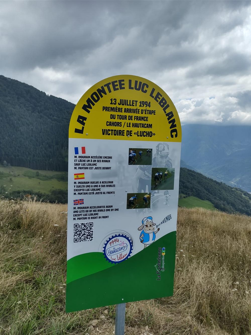 Tijdens de klim zie je niets van dat alles: de grote molen van Riis is uitgewist en Luc Leblanc gaat met de aandacht lopen. Naar aanleiding van de Tourpassage in 2025 eert de regio zijn overwinning in 1995: op de plekken van de cruciale fases prijken borden waar je alles kunt herbeleven.
