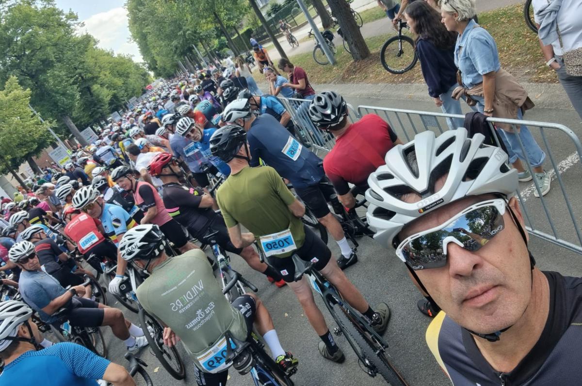 Om 12u18 is het de beurt aan mijn groep. Met mijn bijna 63 zit ik bijgevolg in de categorie mannen 60-64. Vooraf had ik in onze box de tegenstand gemonsterd: “die ziet er afgetraind uit” versus “die heeft wat kilo’s te veel, die kan ik wel aan”.  Ik was totaal niet nerveus want startte zonder al te veel ambitie. Ik wilde niet als laatste eindigen en rekende er op dat er wel iemand met pech zou uitvallen. “En als ik zélf pech heb en toch laatste eindig, heb ik meteen een perfect excuus”, zocht ik al vooraf een uitleg. Ik heb de voorbije maanden veel kilometers gemaald, in de cols getraind en geleefd als een pater. Want veel trappisten gedronken!