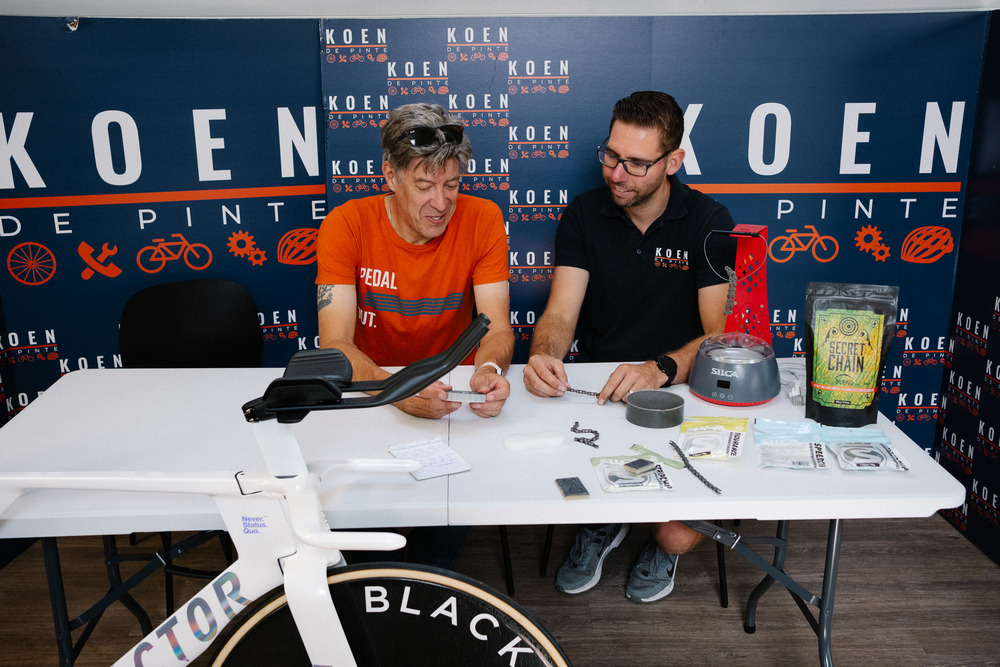 Waar olie vaak vuil aantrekt en lastig proper te houden is, blijft wax droog, proper en extreem efficiënt. Dat betekent minder verlies door wrijving én een drastisch lagere slijtage van ketting en tandwielen. “Wax is een performance tool”, vindt van Droogenbroeck. “De marketing claim is wel dat het ook de levensduur van je ketting verhoogt, maar het hele wax-procedé gebeurt met de hand en is nogal tijdrovend. Het maakt je ketting dus ook duurder. Je ketting gaat er niet oneindig veel langer door meegaan en een Shimano Dura Ace-ketting heb je al voor rond de 30 euro.”
