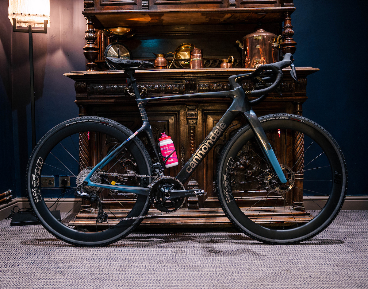 Het stuur bestaat uit een Cannondale System R-One cockpit, afgewerkt met Fizik Solocush-stuurlint voor extra comfort. Morton rijdt verder met een Fizik Aliante R3 Adaptive-zadel. Navigatie gebeurt via de Wahoo ELEMNT BOLT 3, waarvan het grotere scherm leesbaar blijft in natte en vuile omstandigheden.