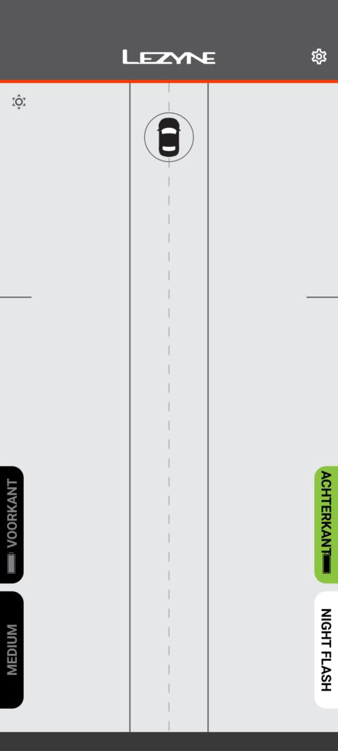 Via de Lezyne-app kan je makkelijk de verschillende standen van de lichten bedienen: je klikt ze aan of uit, of stelt de dag of nacht flashmode in, die fanatiek knippert bij achterliggend verkeer. Je kan de stand ook gewoon kiezen op de lichten zelf.