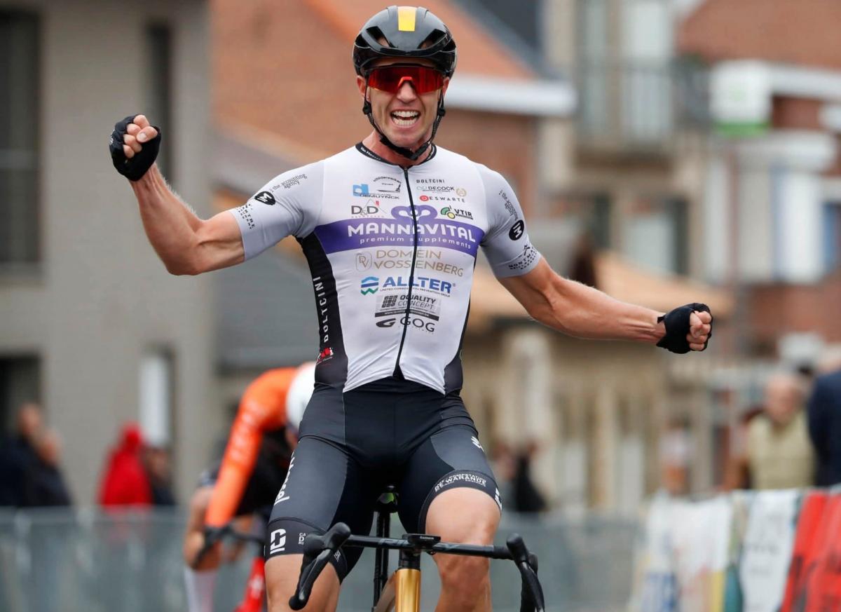 “Goed, ja, heel goed eigenlijk”, opent de renner van Wielerteam Decock-Mannavital-Van Mossel met een glimlach wanneer hij terugblikt op 2025. “Ik kan zeker niet klagen met hoe het seizoen gelopen is.” 9 zeges, waaronder in Tielt, Sleidinge en Houthulst, bevestigen dat hij nog steeds mee de koers maakt. Vooral zijn zege in Tielt, de 100e editie van die zware kermiskoers, is hem bijgebleven. “Dat was 1 van die dagen waarop alles in zijn plooi viel”, beseft hij. “Op het einde bleven we met de sterksten over en kon ik het afmaken in de sprint. Dat ligt me het beste.”