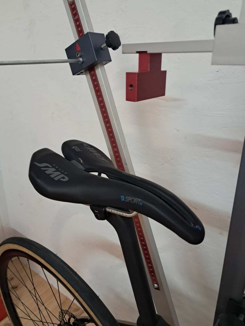 Dat is precies de reden waarom Selle SMP voor een afhellend zadelpunt kiest. “Bij hun zadels lopen de bruggen onderaan omgekeerd dan bij andere merken. Daar hebben ze het patent op. Dat geeft hen die flexibiliteit om met de zadelpunt te spelen.”