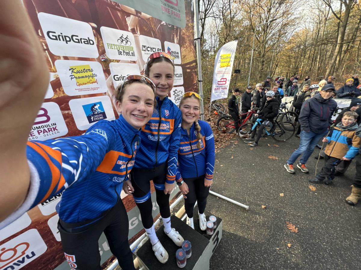 Ook in Europa was de tweeling nauwelijks van elkaar te scheiden in de wedstrijden. Abby won op de VAM-Berg, in Hilversum en in Venlo, maar Lily was nooit ver weg. In Venlo werd ze 2e, vlak achter haar zus. “Door het fietsen doen we zoveel coole dingen samen, deze reis naar Europa met de EuroCross Academy is daar het perfecte voorbeeld van. Ik had niet gedacht dat we hier meteen zulke goede resultaten zouden boeken. Natuurlijk wilde ik mijn zus verslaan en ook een overwinning pakken, maar ze lijkt de laatste 2 jaar wat sterker te zijn dan ik. Daar kan ik mee leven, maar ik weet dat ik haar op een goede dag kan verslaan. Samen een podiumselfie maken in Venlo, met onze ploeggenote Elena op 3, was echt geweldig.”